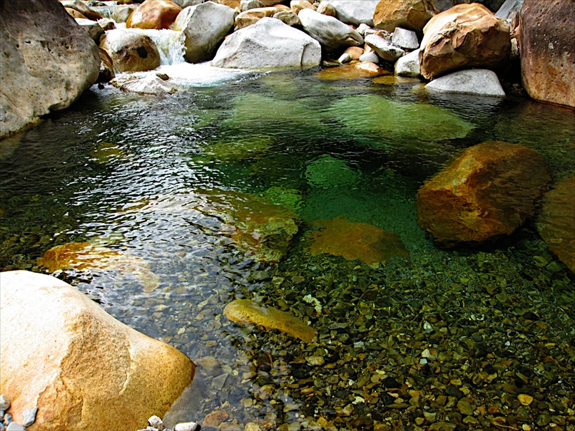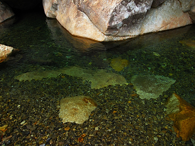 よく探して渡ったら 3 歩で向こう岸まで行けた。