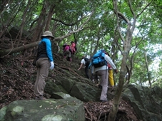 左右から草木が邪魔する。 中には棘々のものもあり、