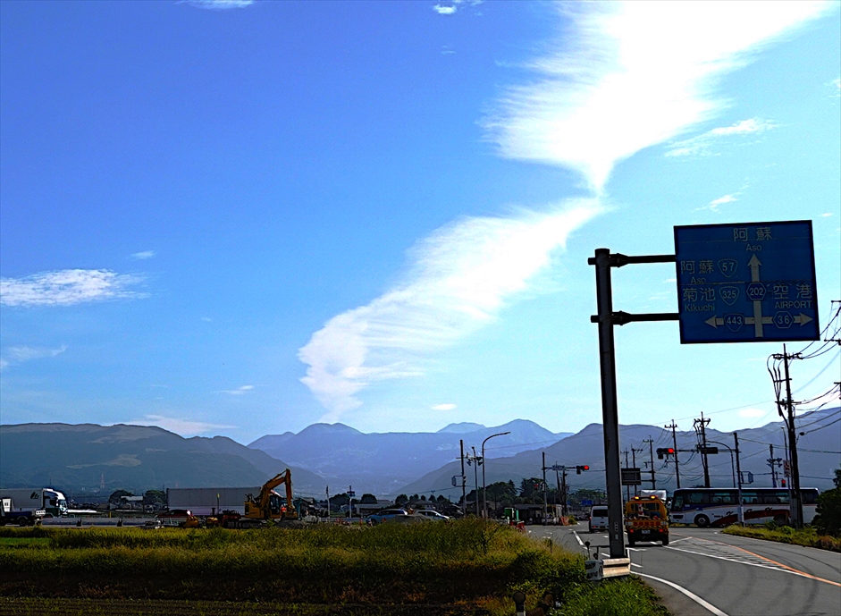 走っていると、阿蘇の山から噴煙が