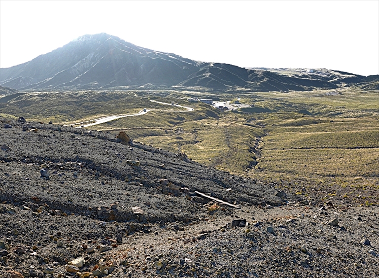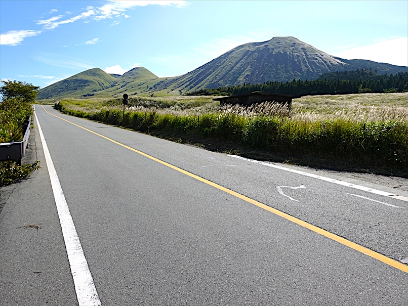 草千里から火口方面へ向かう道路。