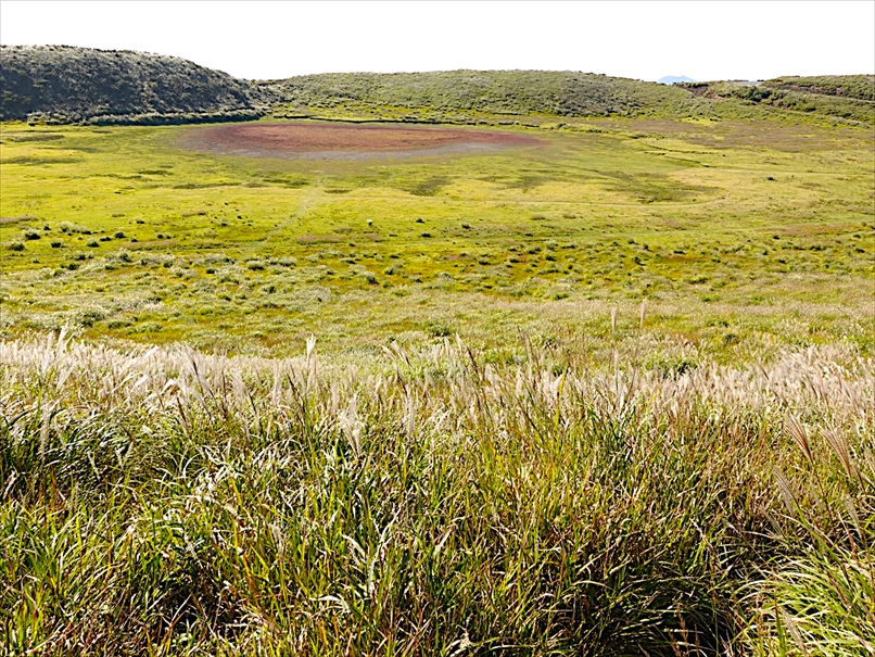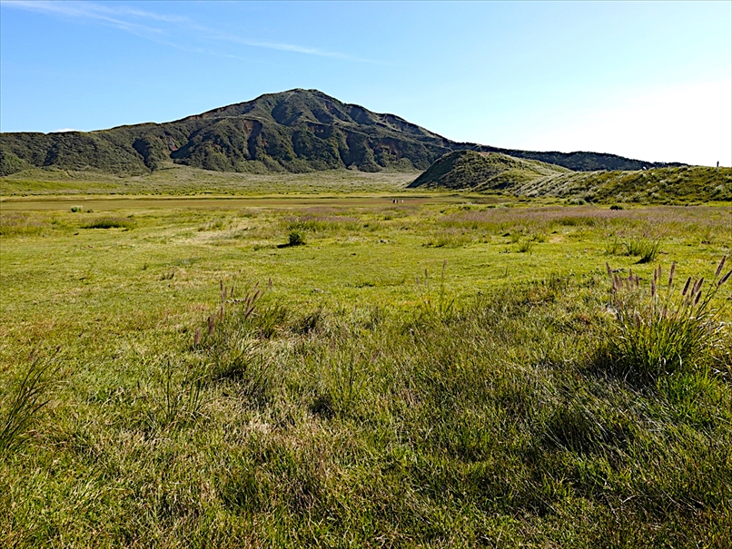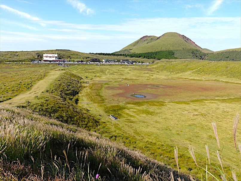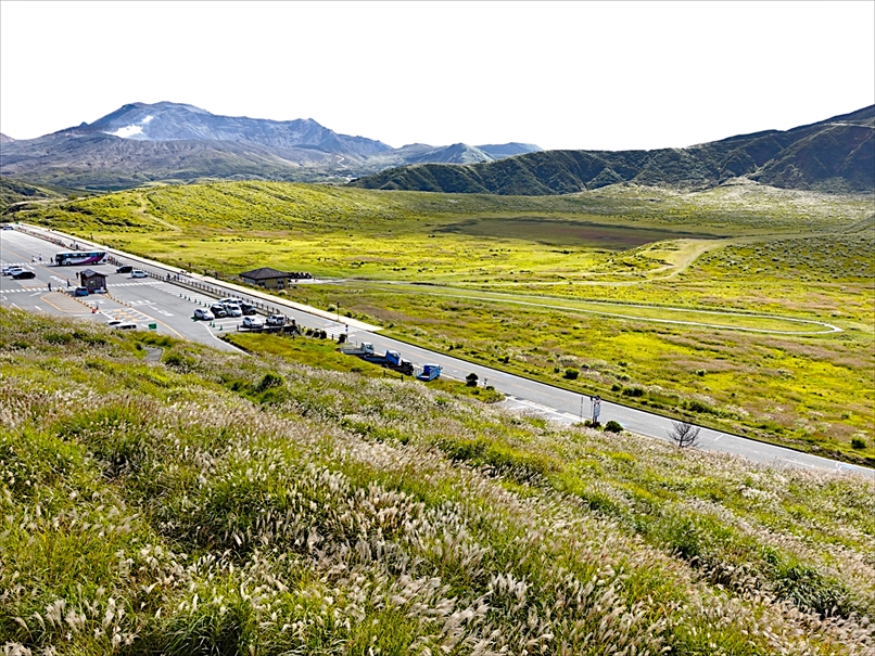 無料の駐車場から草千里を眺める。