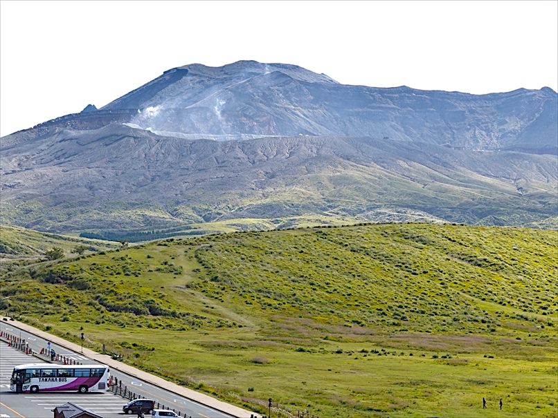 東の方には、阿蘇の火口が見える。