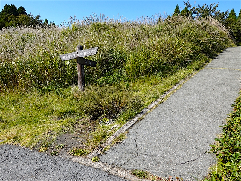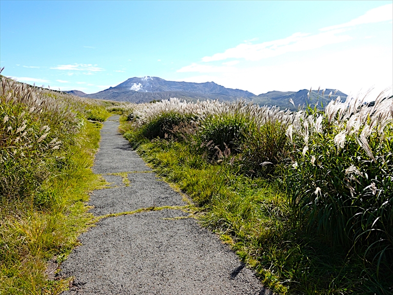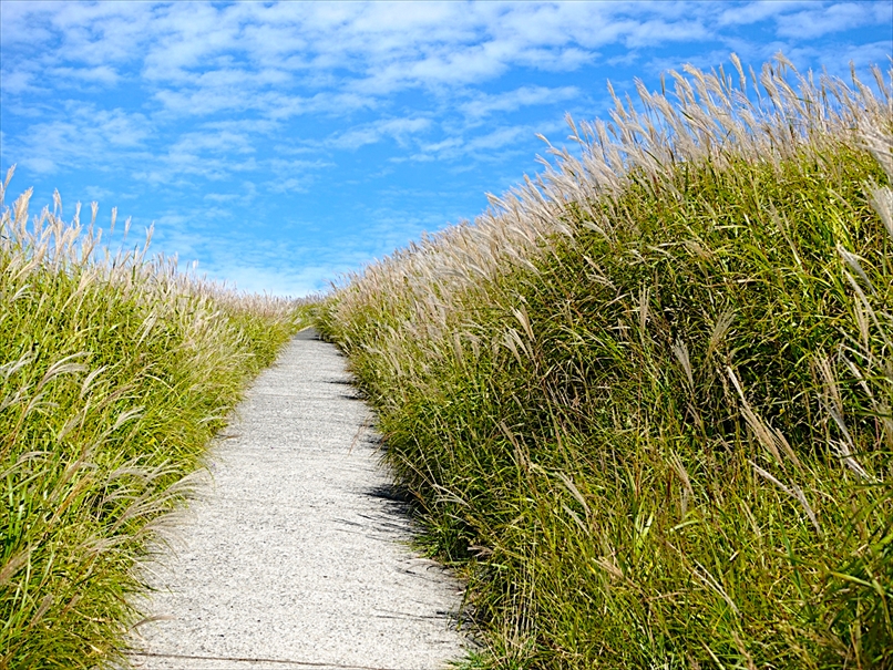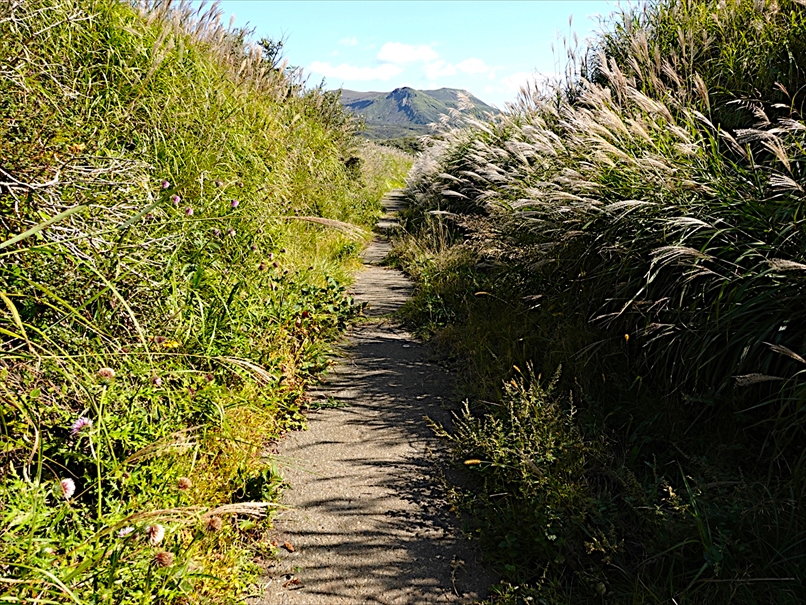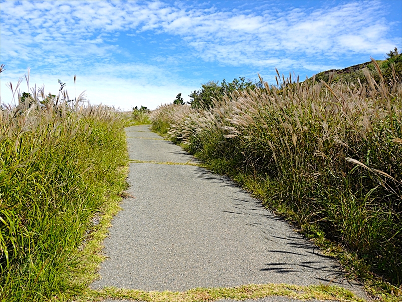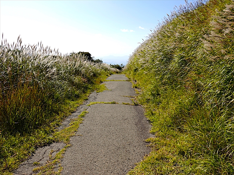 道路の南側にはススキが広がっていて、