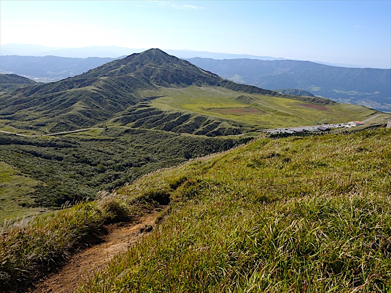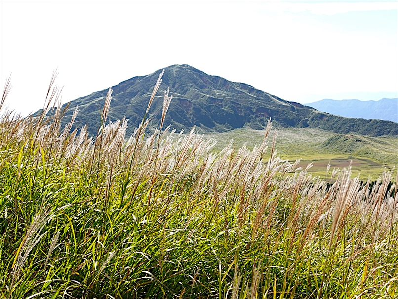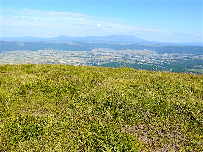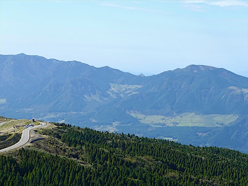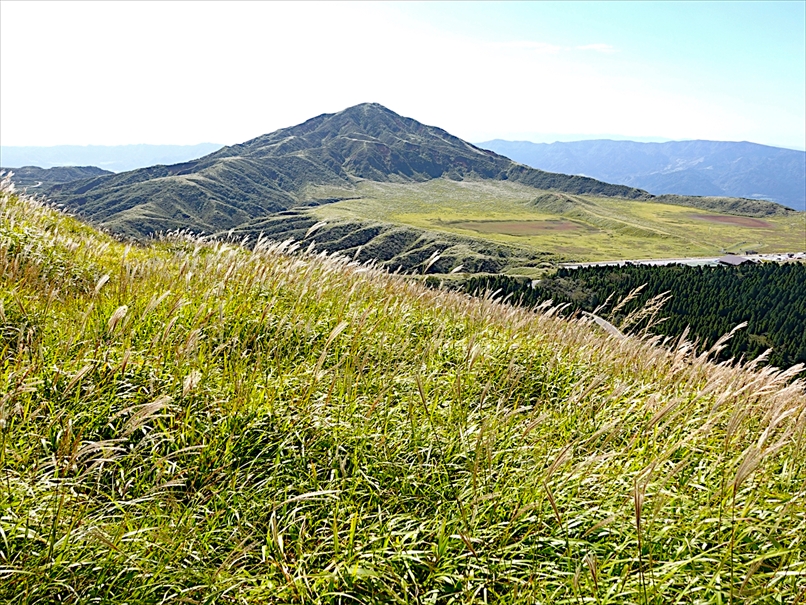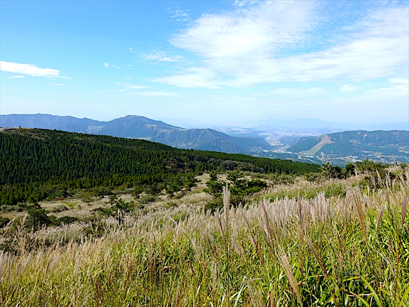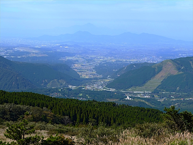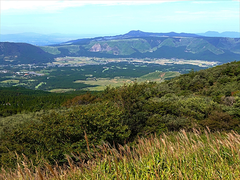 北側には往生岳、ずっと向こうにくじゅう連山。