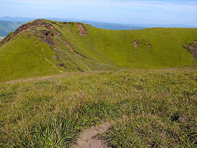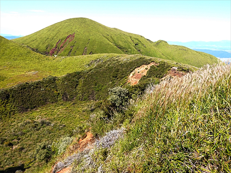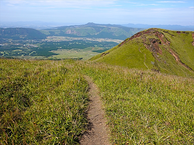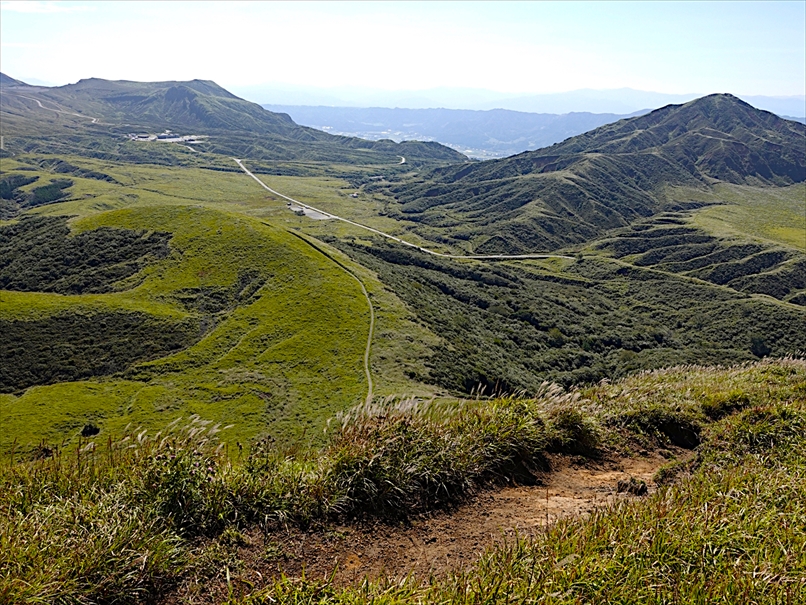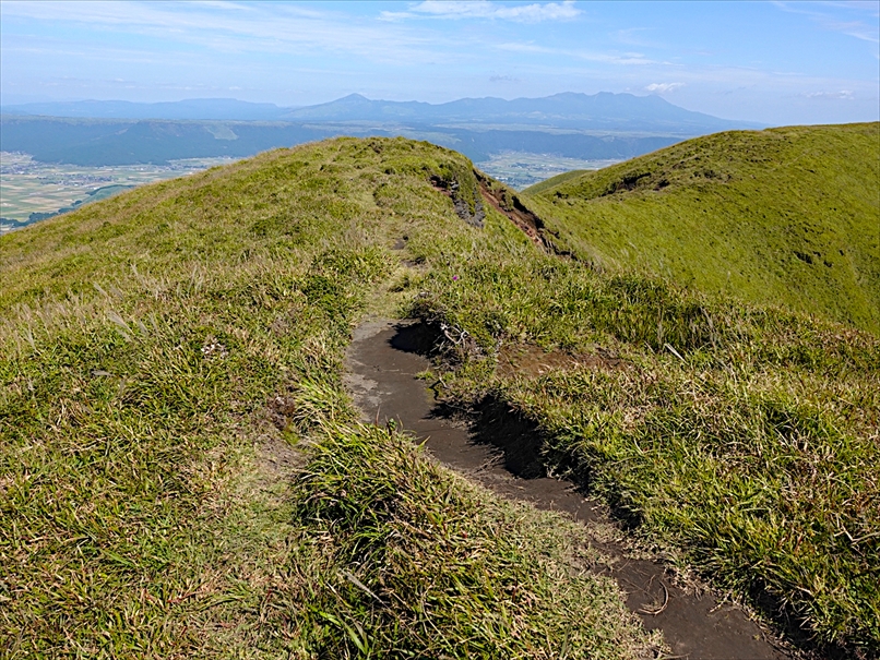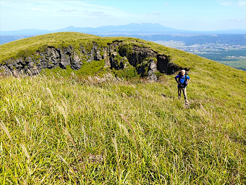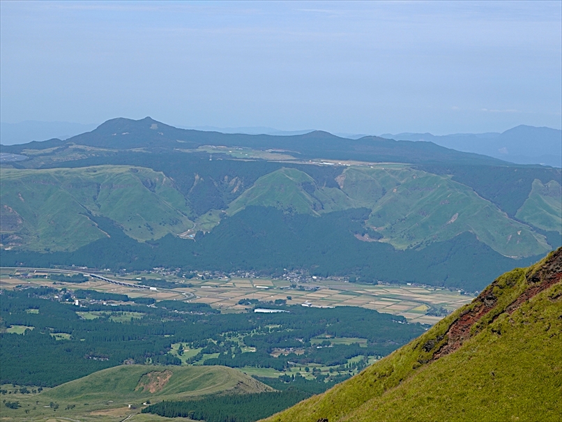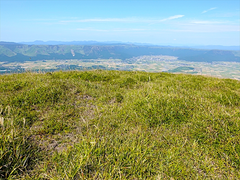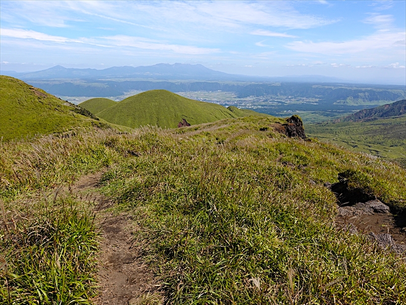 北側には往生岳、ずっと向こうにくじゅう連山。
