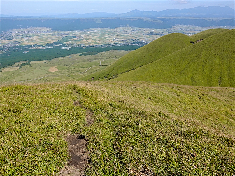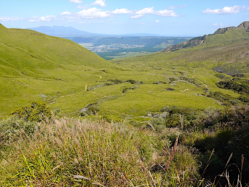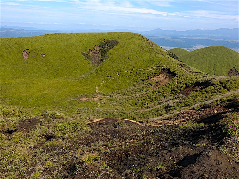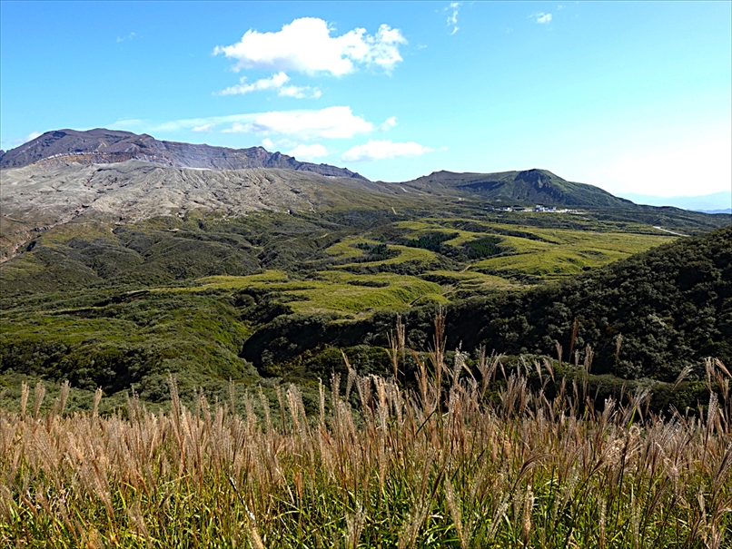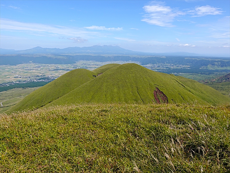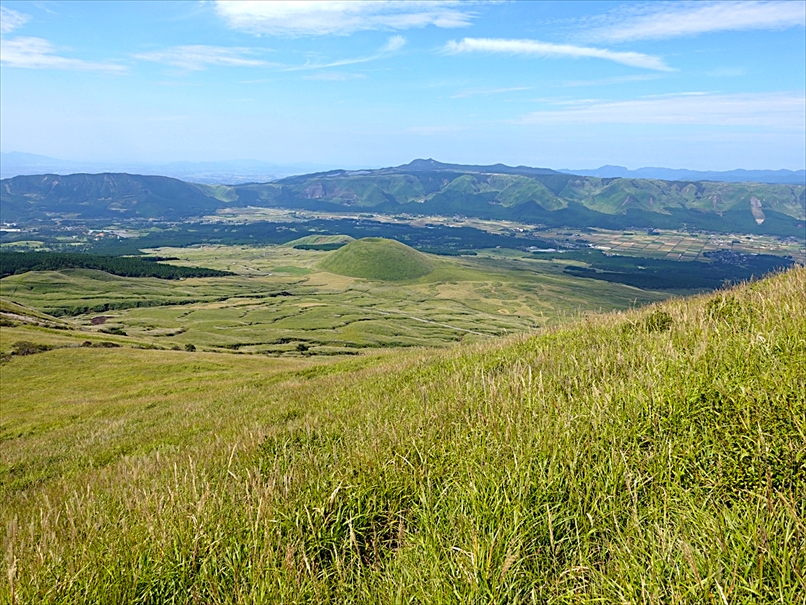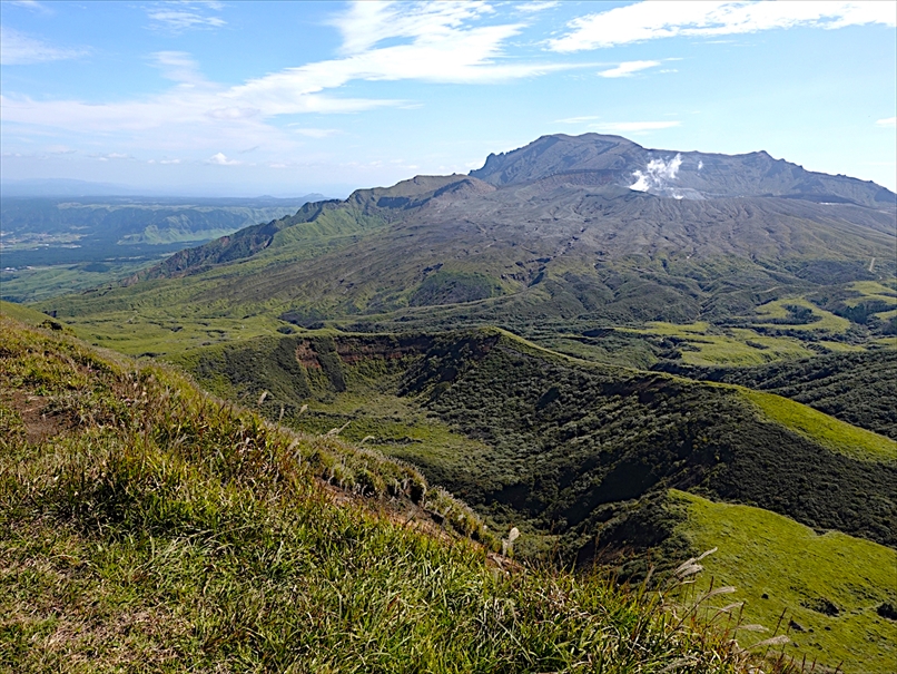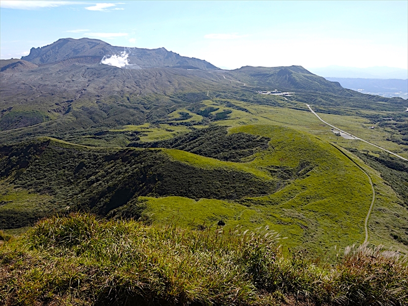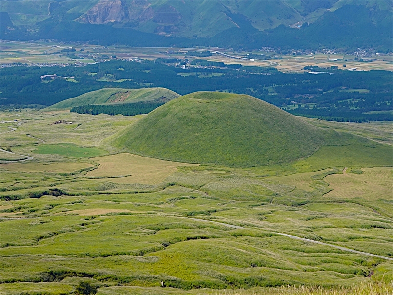 烏帽子岳 と 草千里。