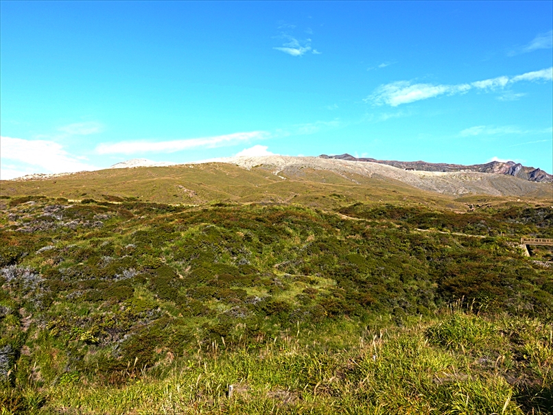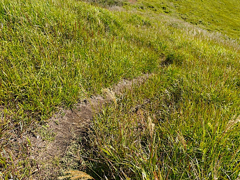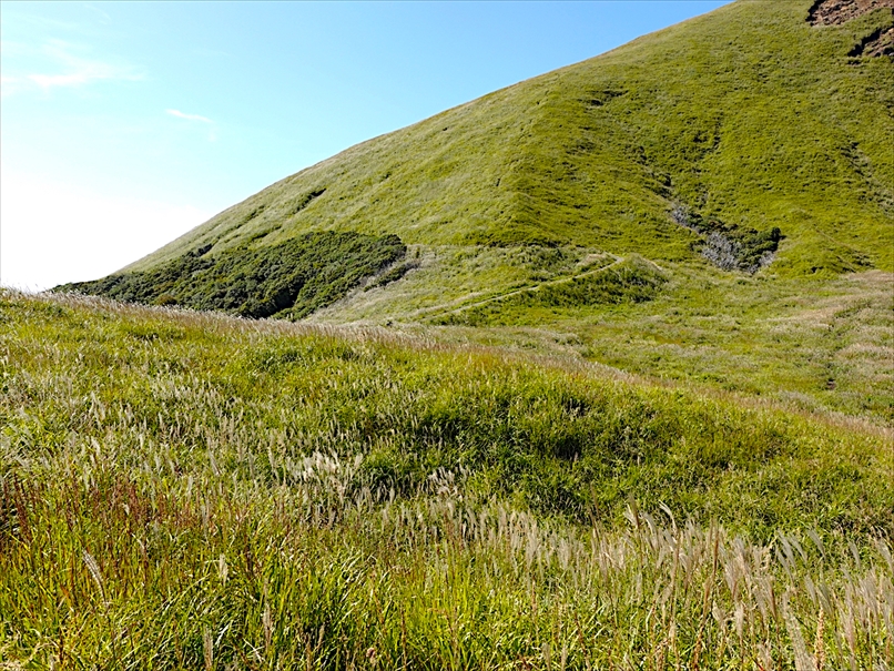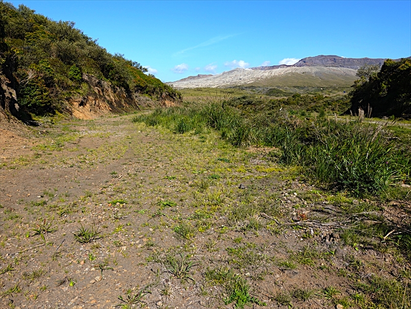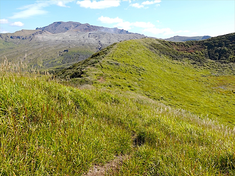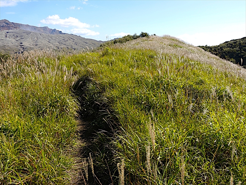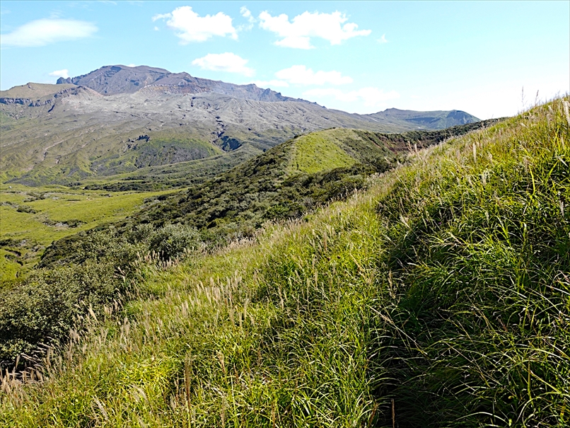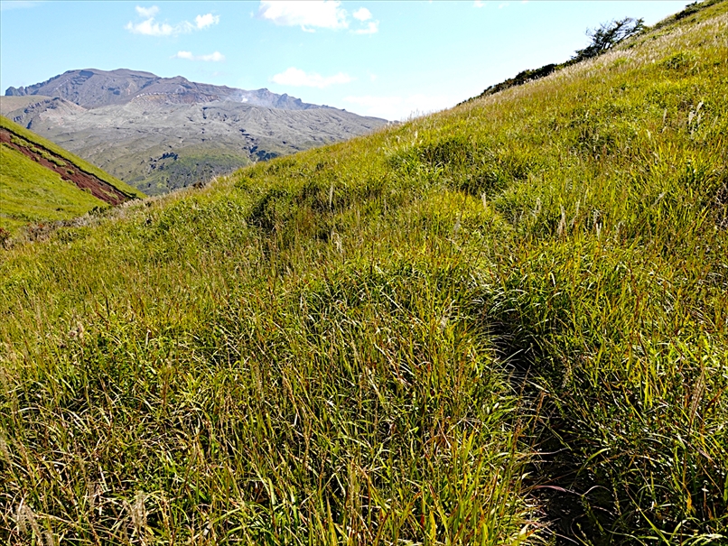 向こうが火口、手前が杵島岳のトラバース道。