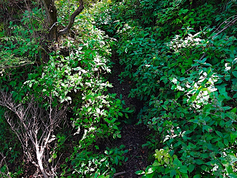 右側の斜面が剥げている所が