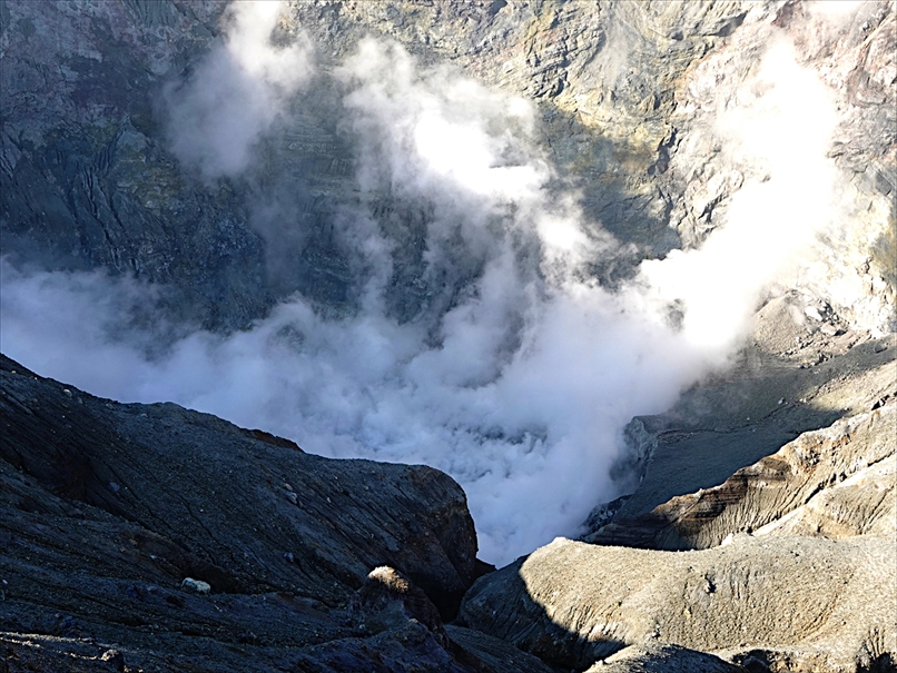 火口が見える場所に再び行ってみると、