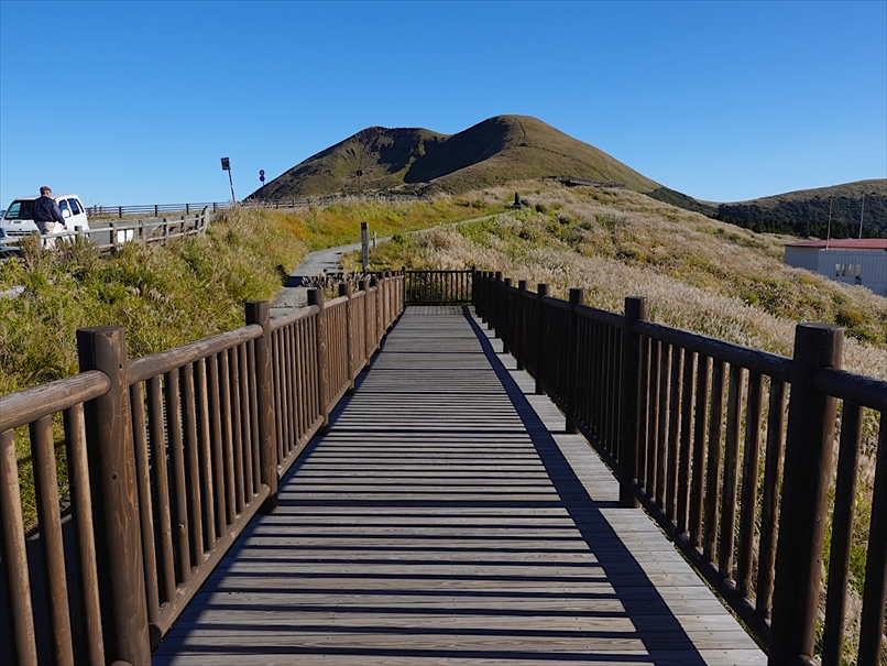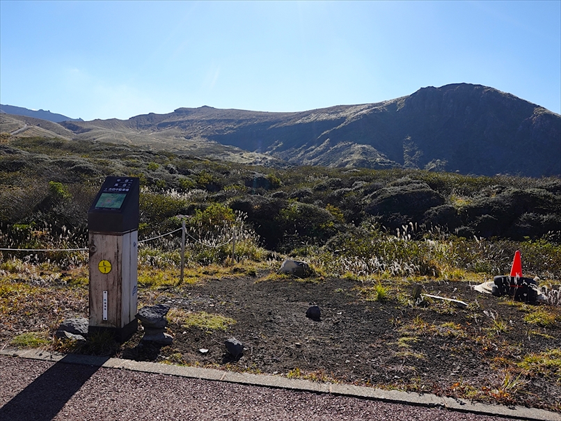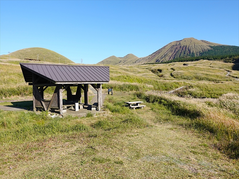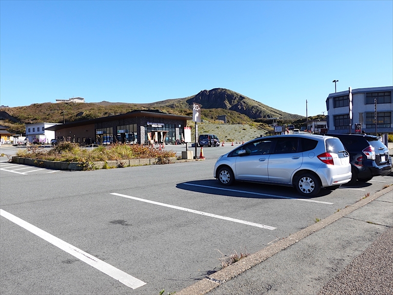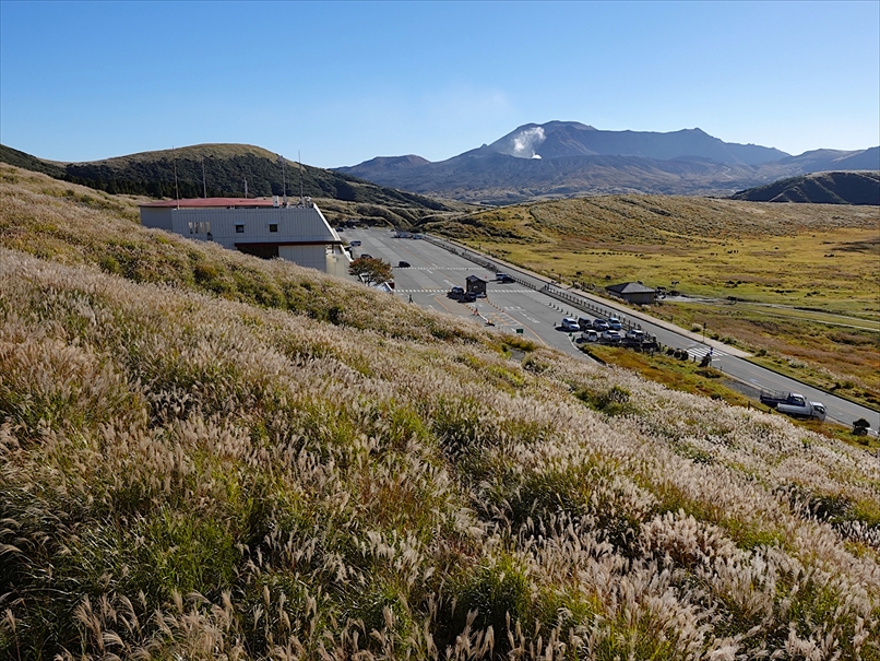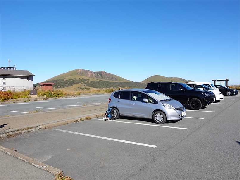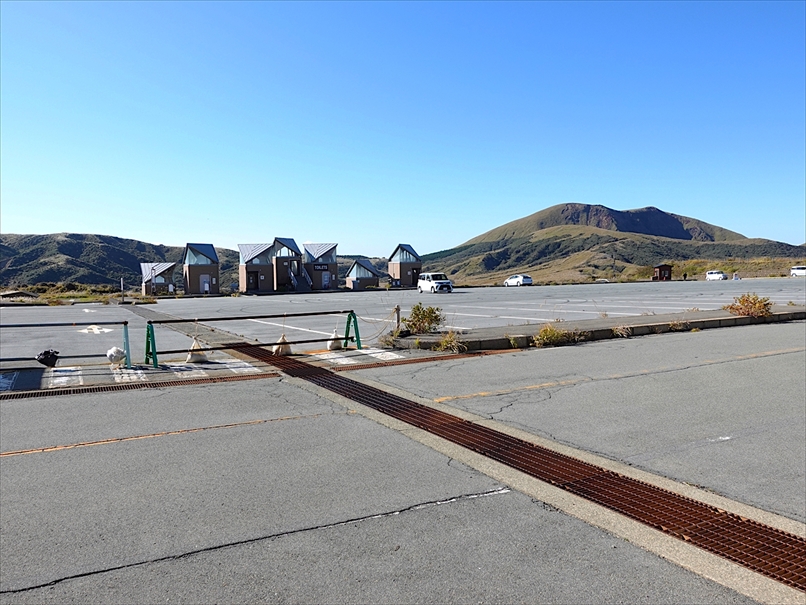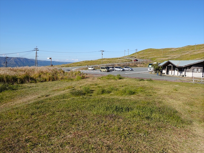 草千里の上の無料駐車場に到着。