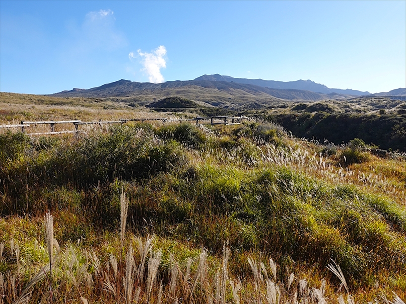 噴煙を上げている阿蘇山。