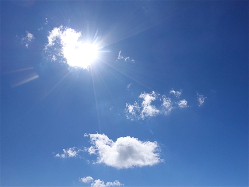 カメラを南寄りに向けると、雲の無い快晴の青空〜