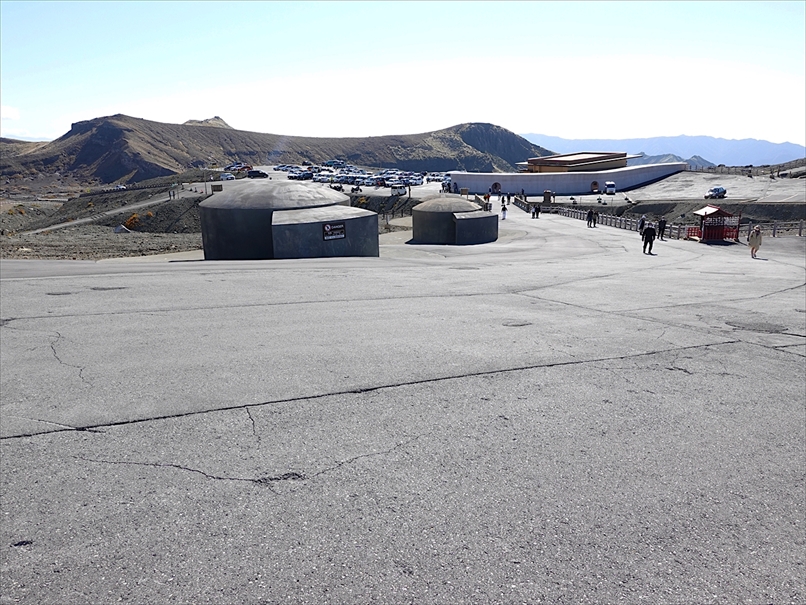 道路脇を少し歩くと、火口エリアの料金所。