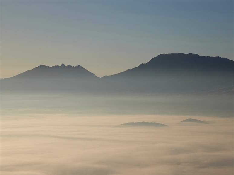 阿蘇の山並みがまだ綺麗に見えるね〜