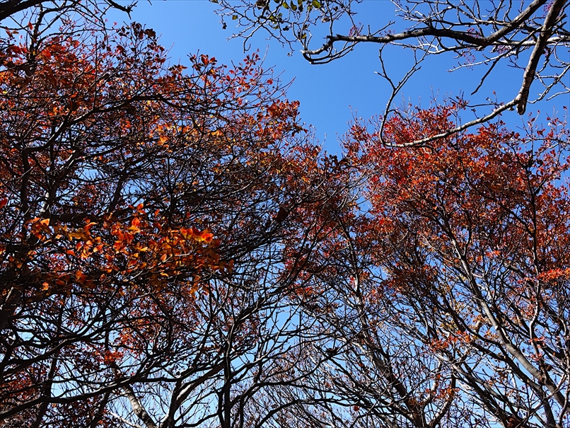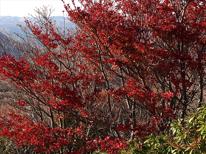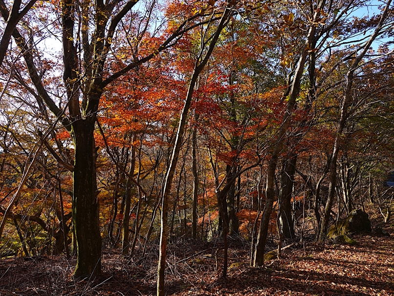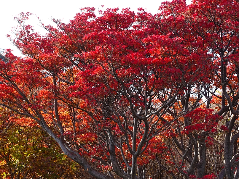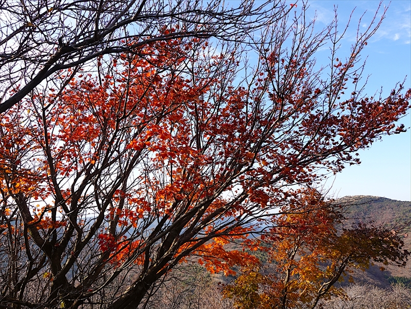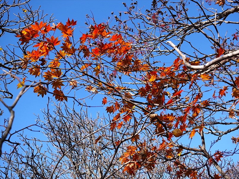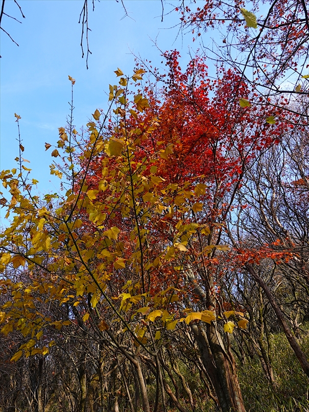 登山口のすぐ右手に、色付いた紅葉発見〜