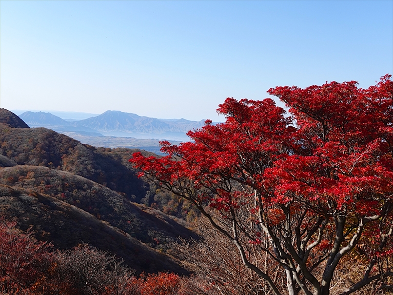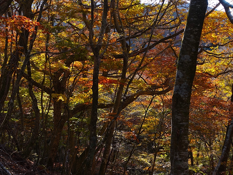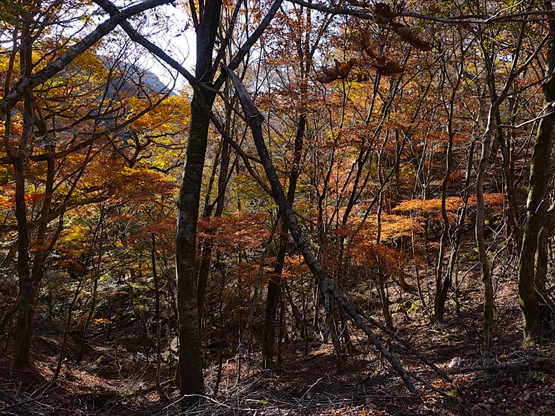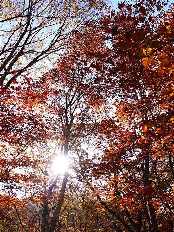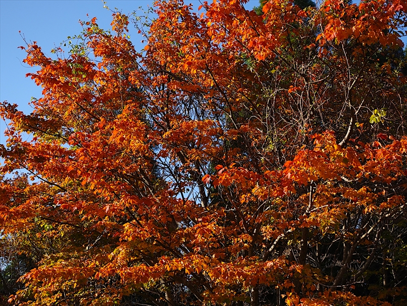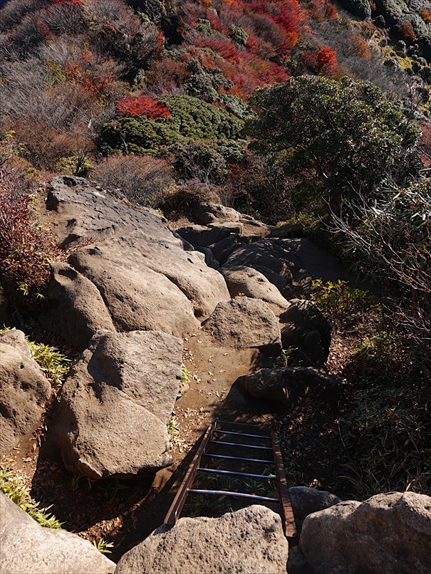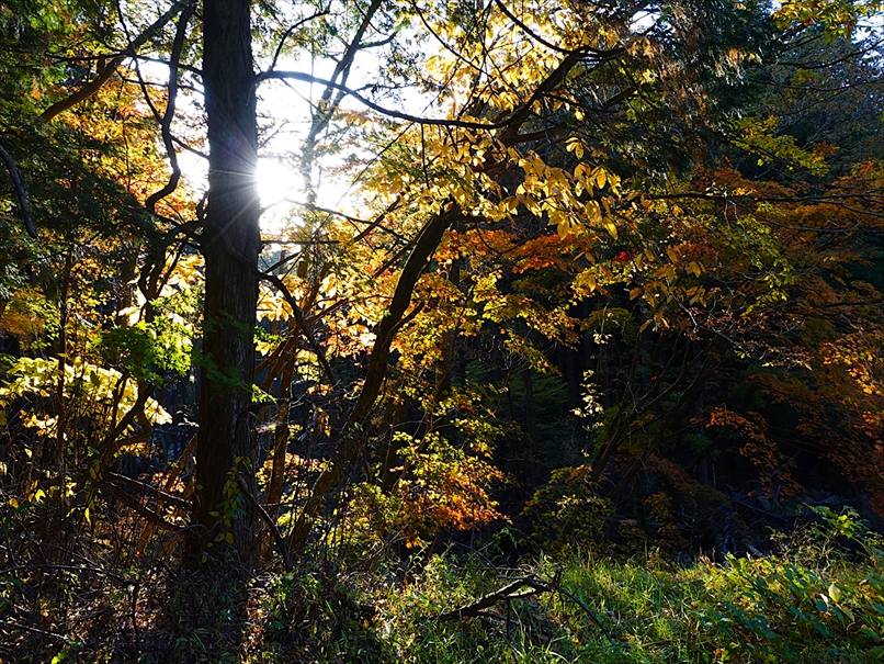 登山口のすぐ右手に、色付いた紅葉発見〜