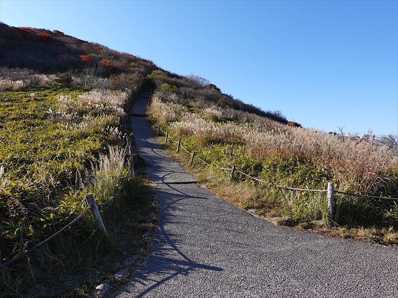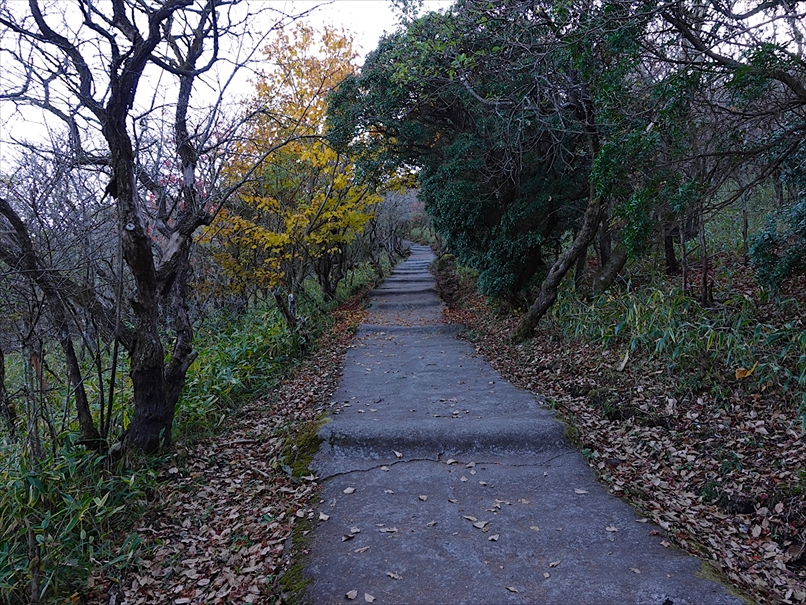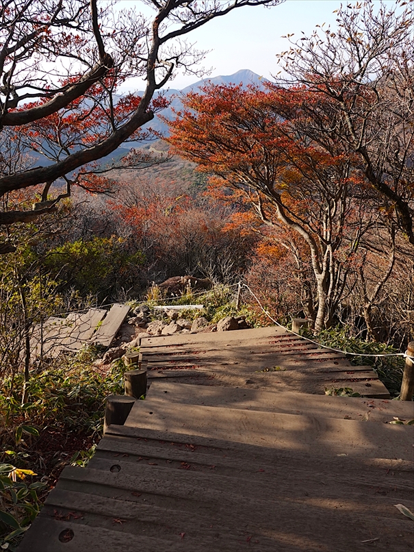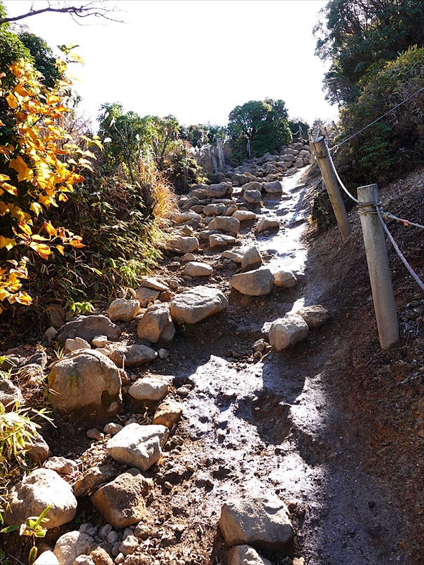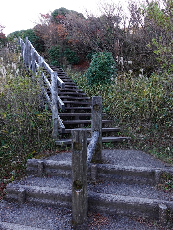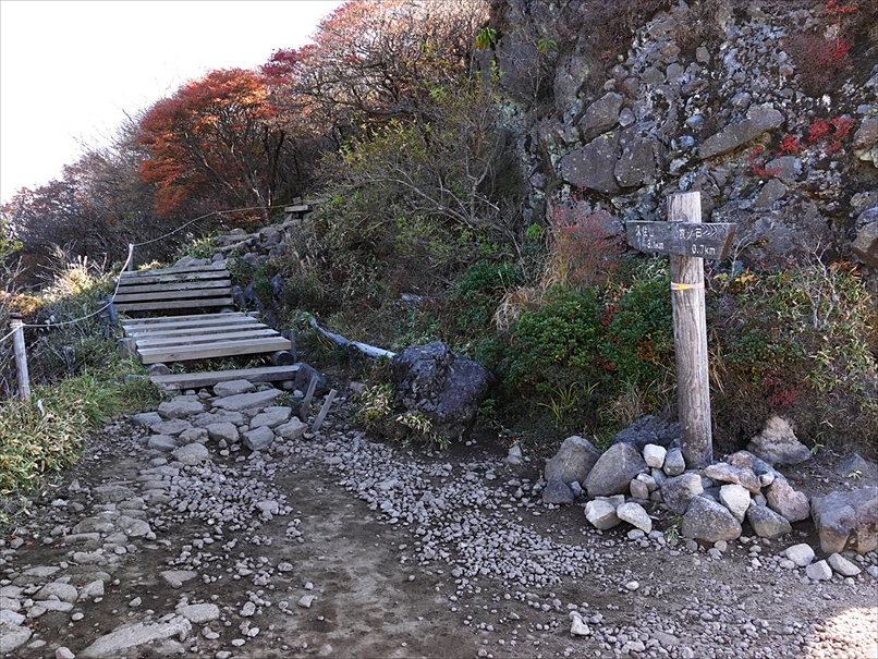 ゴロゴロ道の歩きが終わって、やっと木道階段。