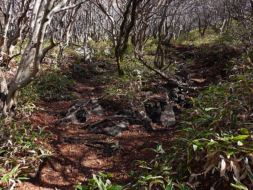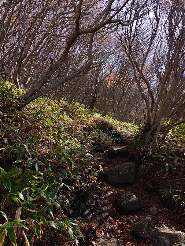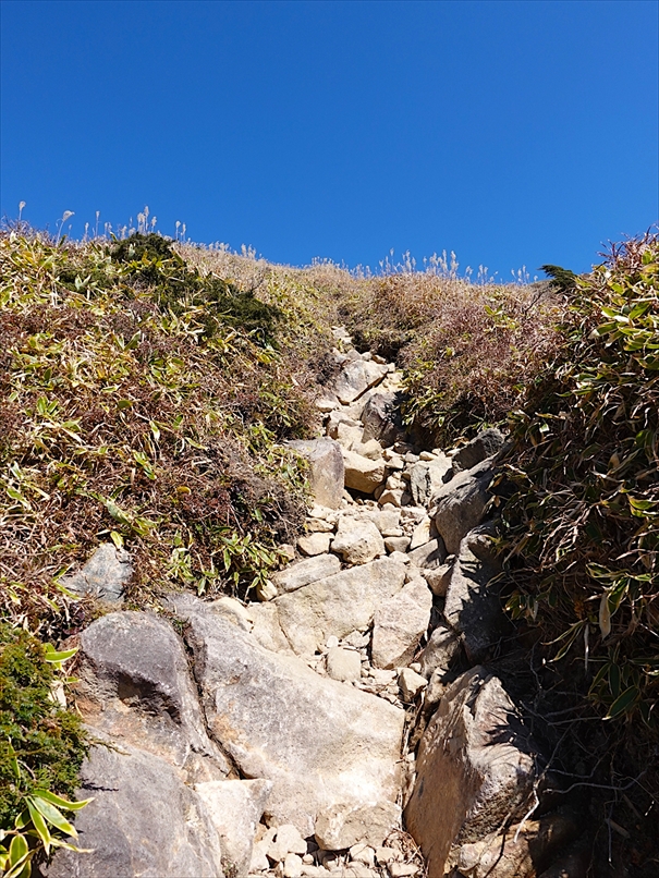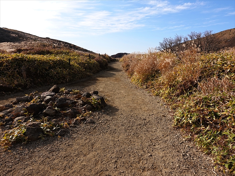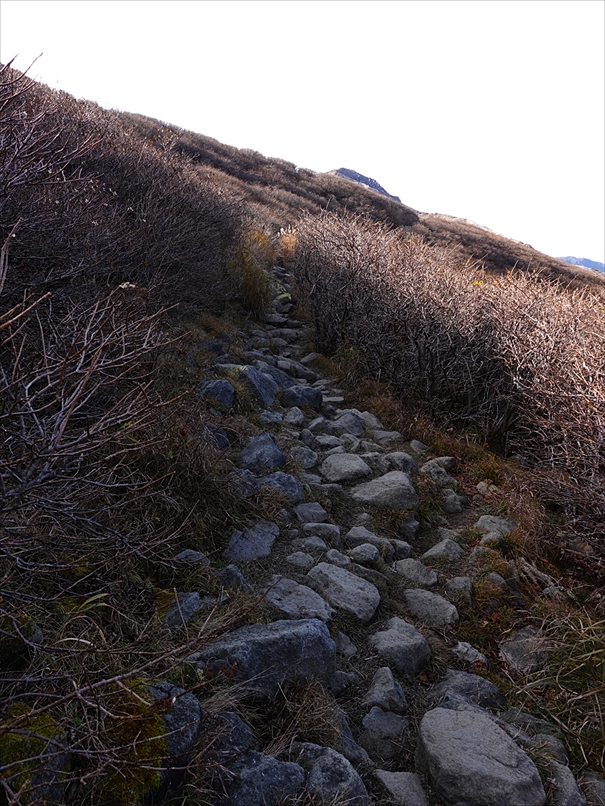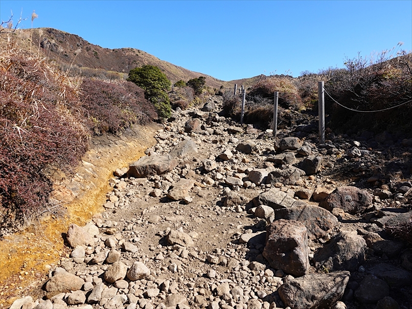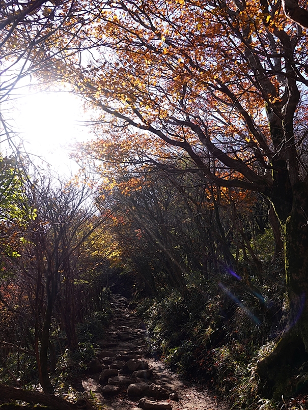 ゴロゴロ道の歩きが終わって、やっと木道階段。