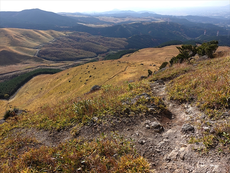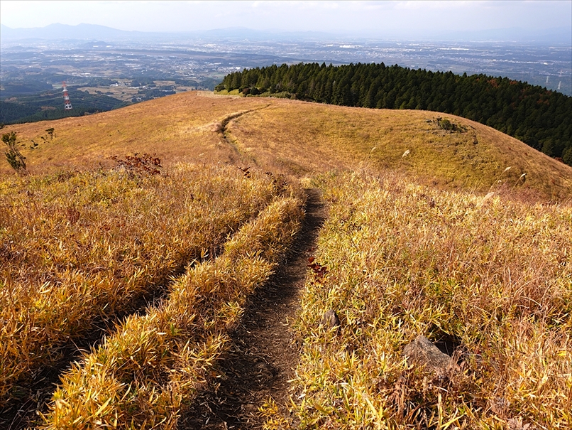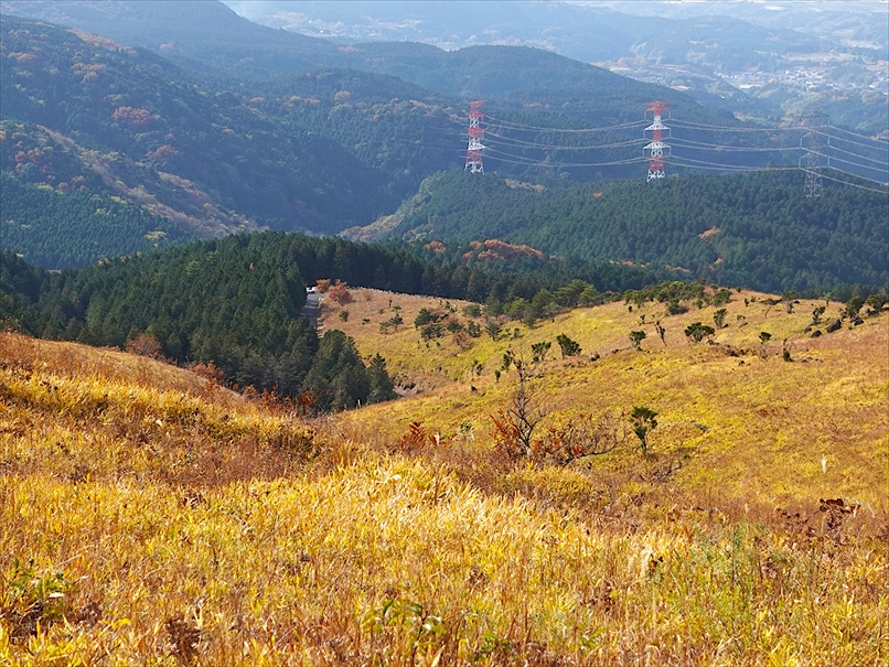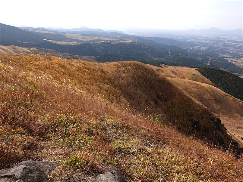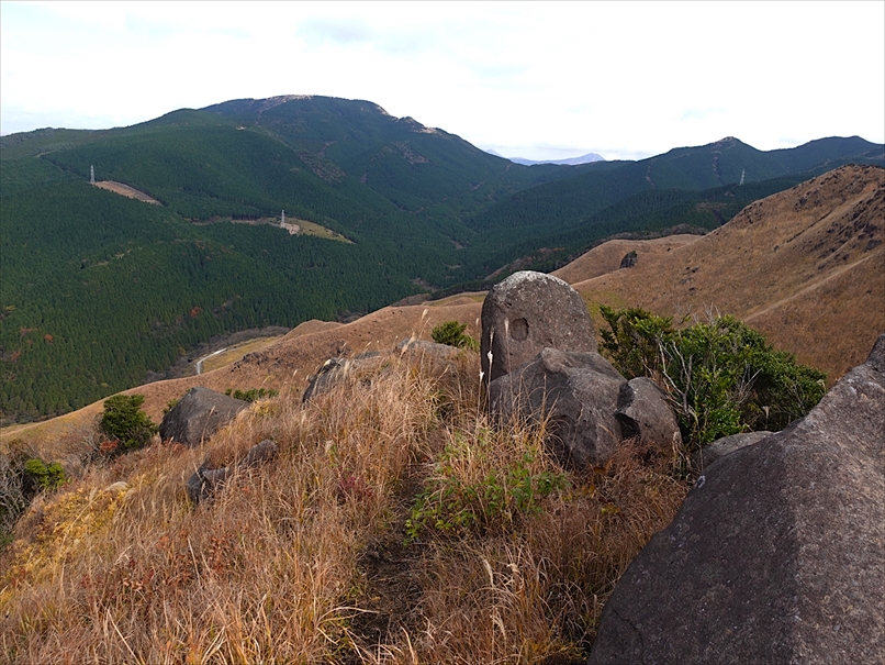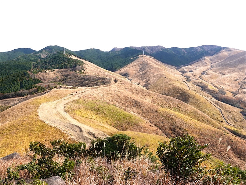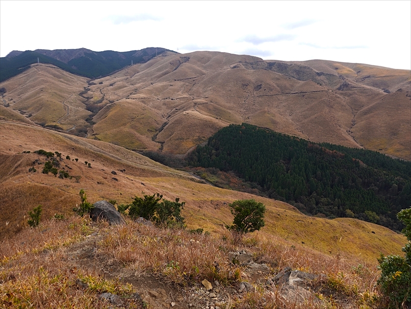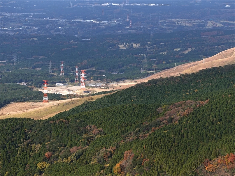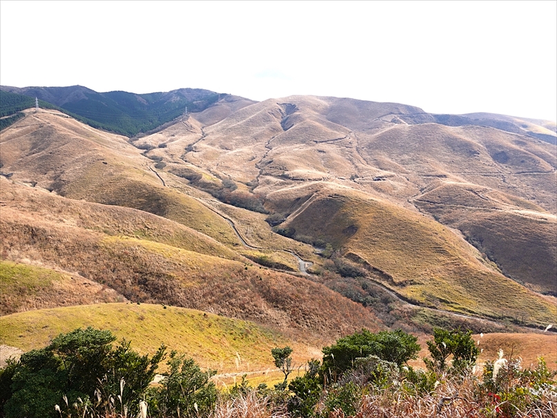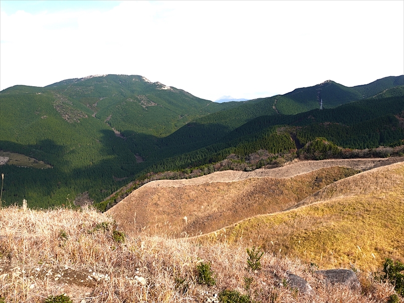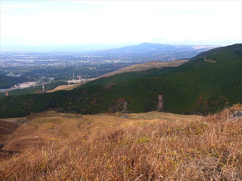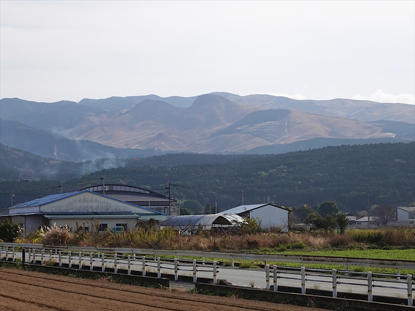 中央奥の左寄りが俵山。 あちらの山並みは全然緑。