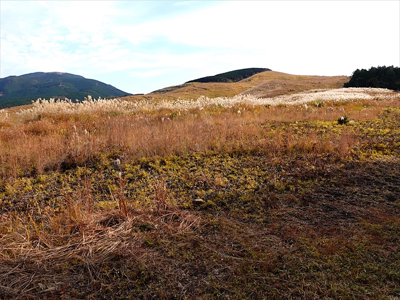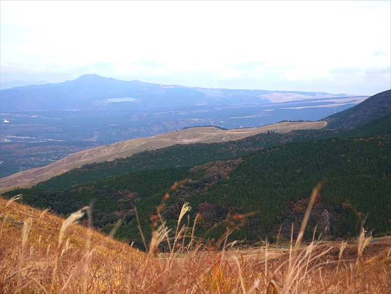 すぐ手前が牧草地帯で、中央奥の遠景が鞍岳。