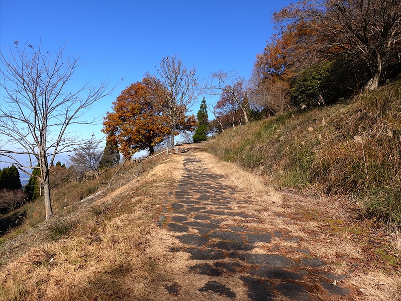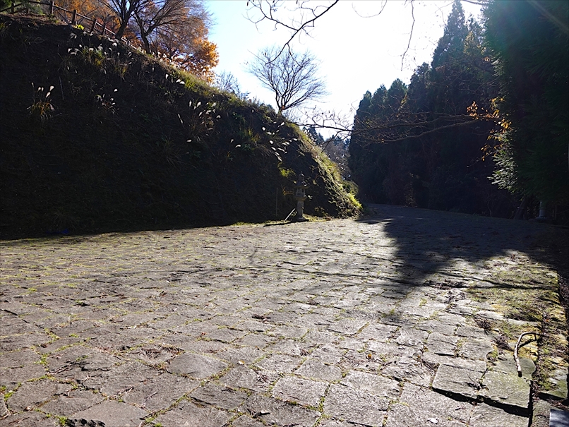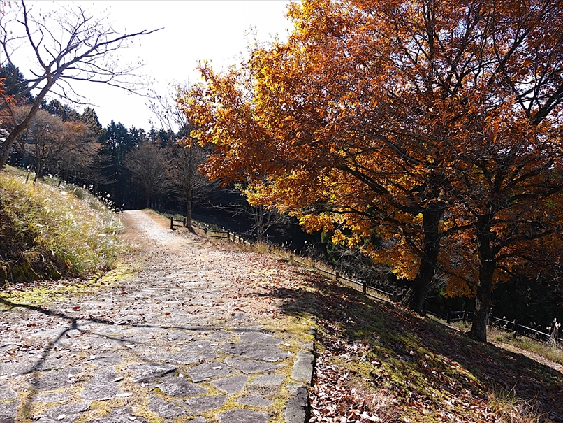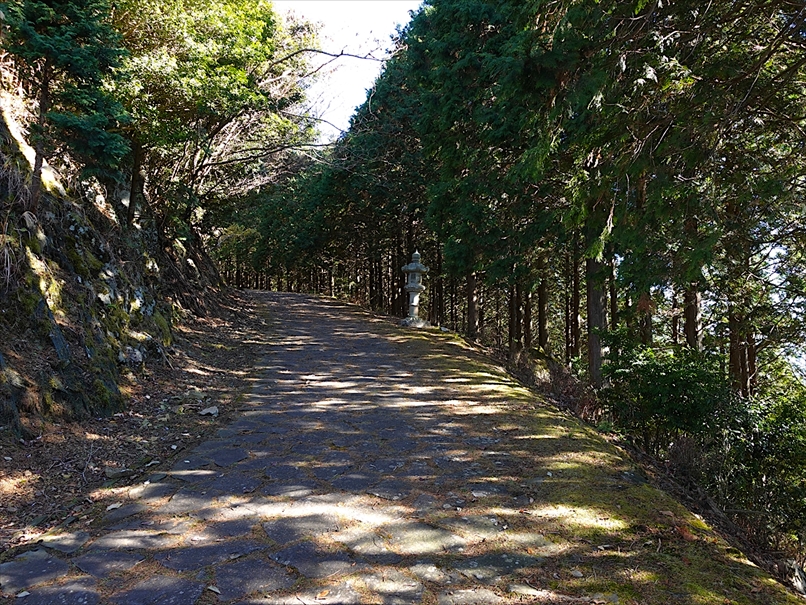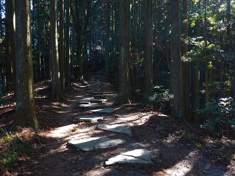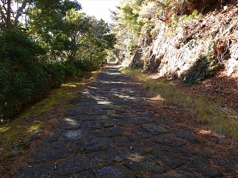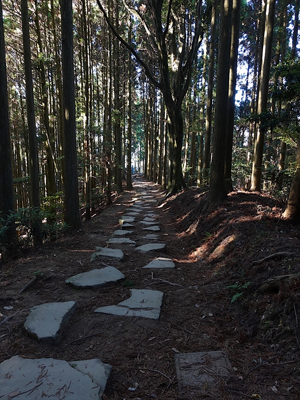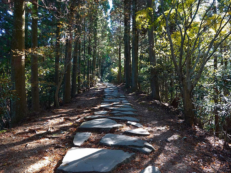 しばらく登ると、やや石畳風の平坦な道。