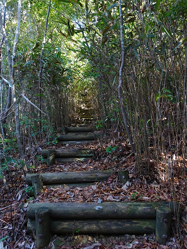 左に竹林を見ながら、再び石段へ Go 〜