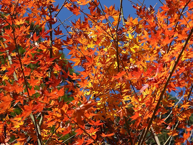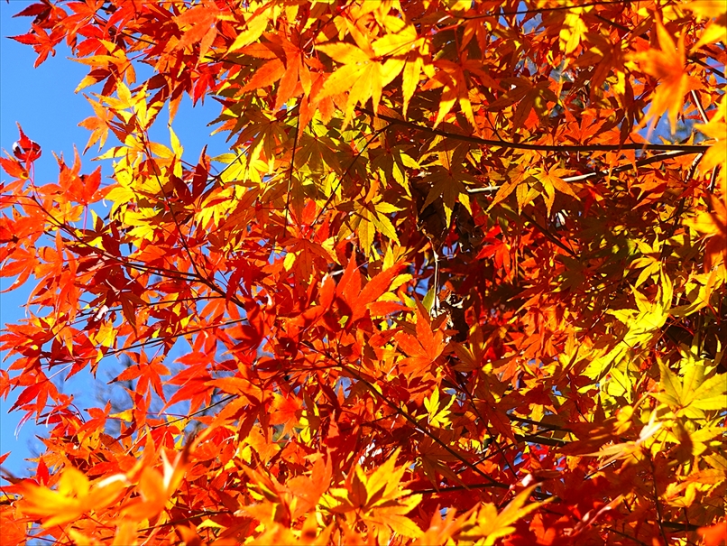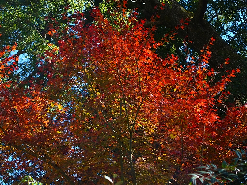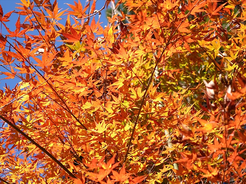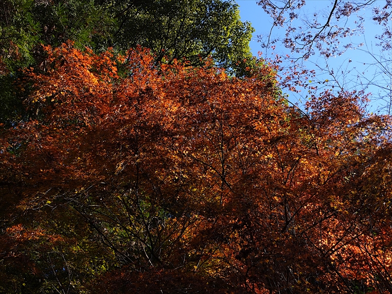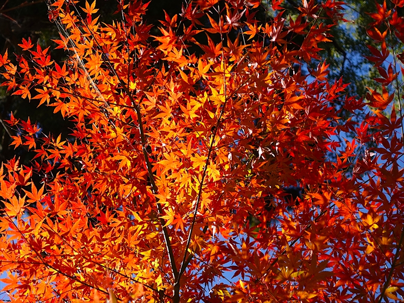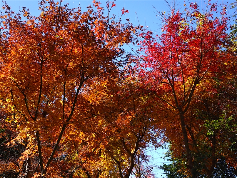 反対側には、紅が多めの紅葉が。