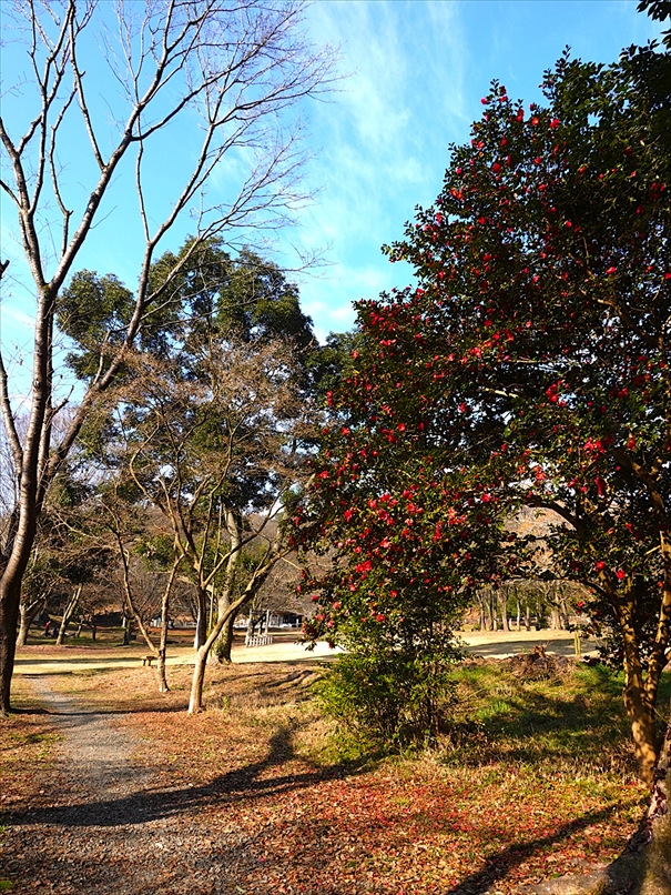 トンボ池の脇の山茶花。