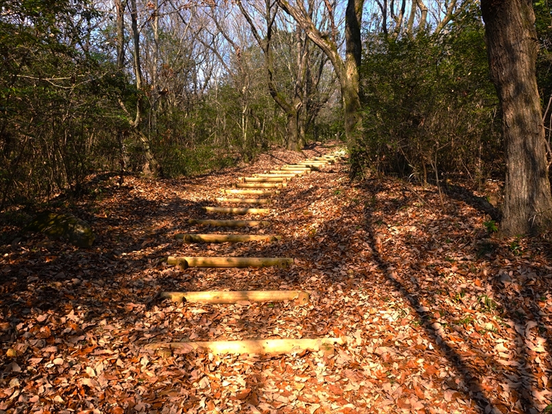 丸太の階段の登り。