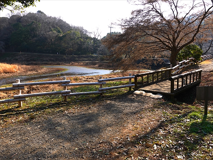 しばらく歩くと、トンボ池からの小川を渡る。