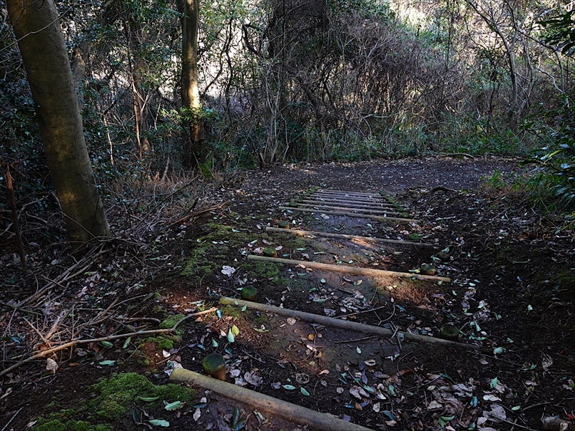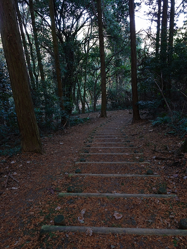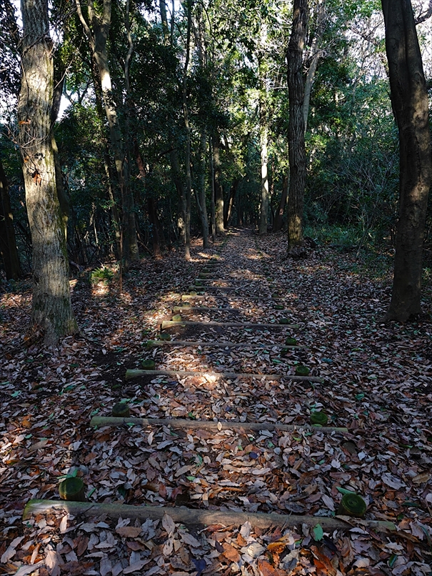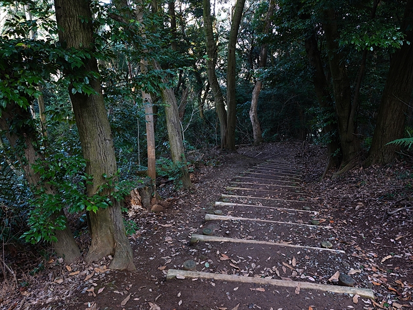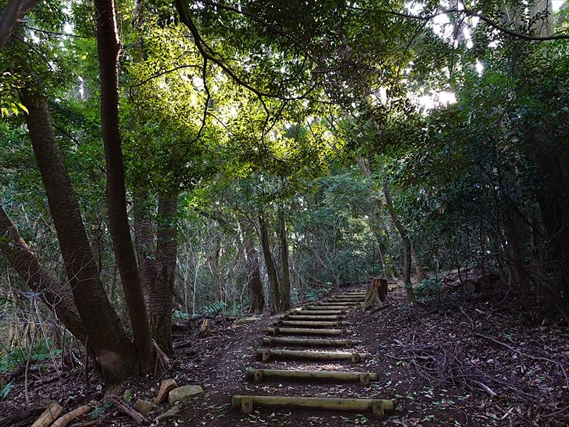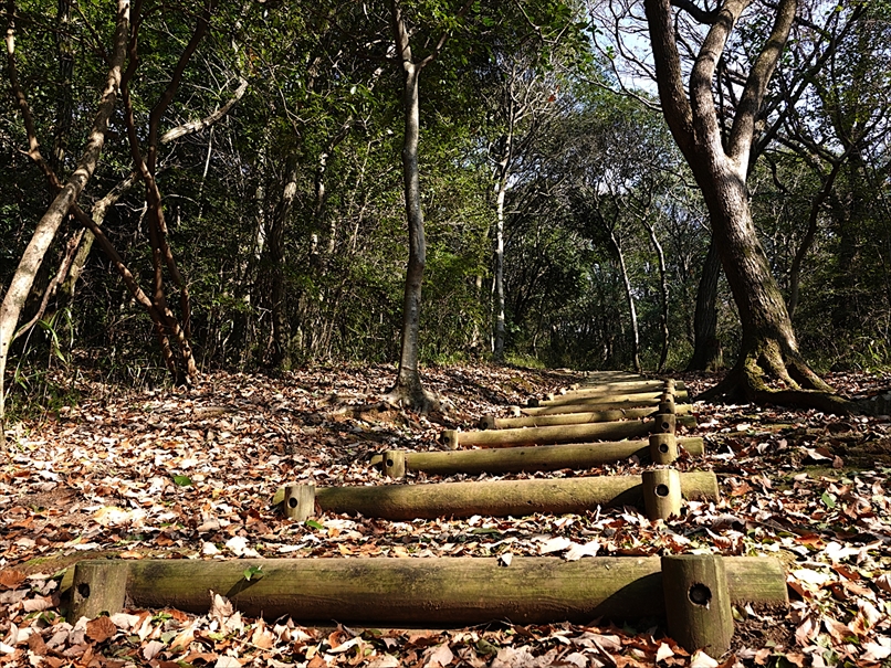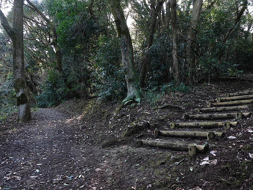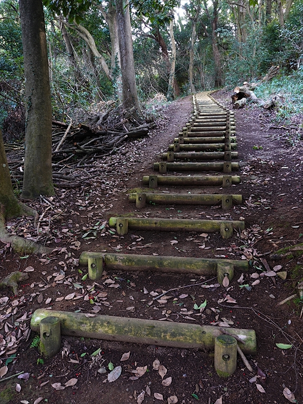 少し先から、丸太の階段になった。
