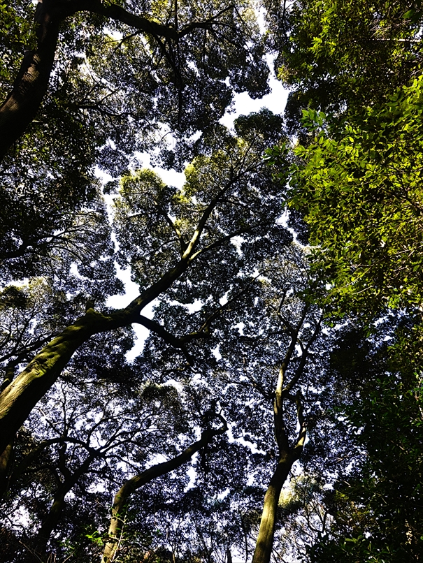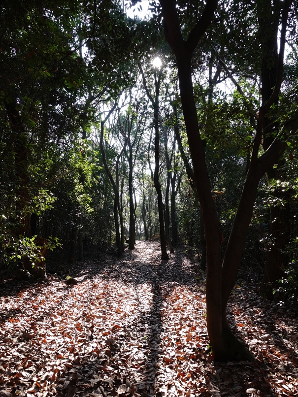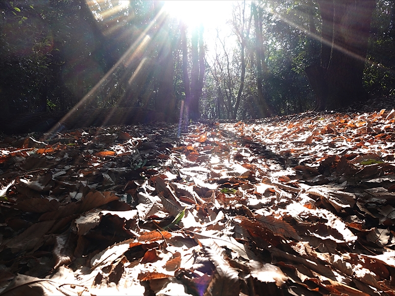 樹林の隙間から射し込む逆光が