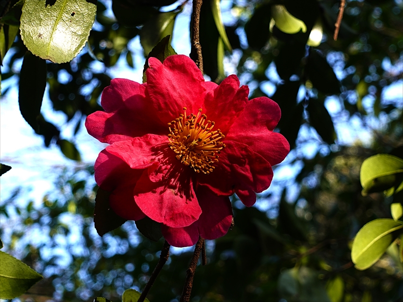 トンボ池の前の山茶花。