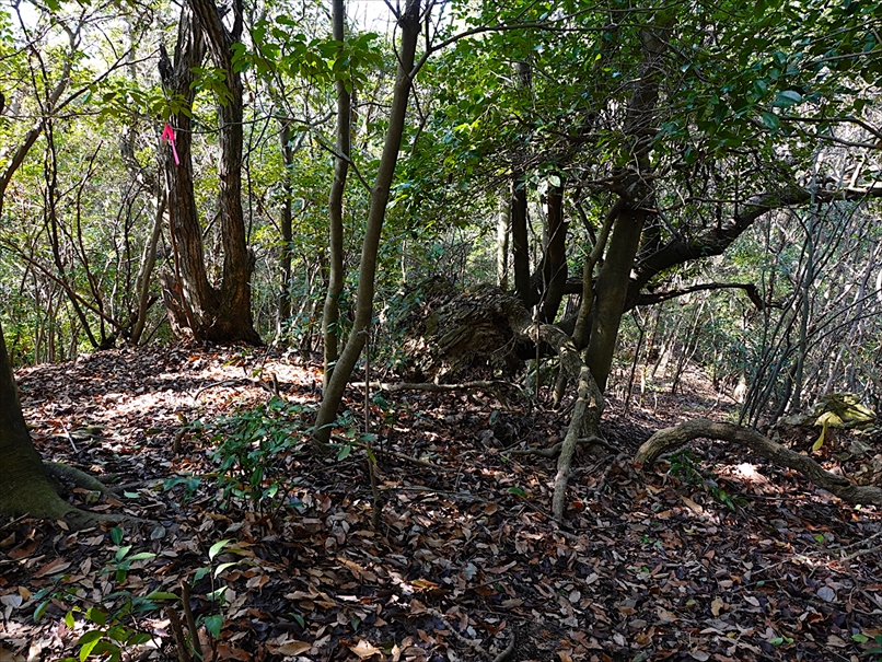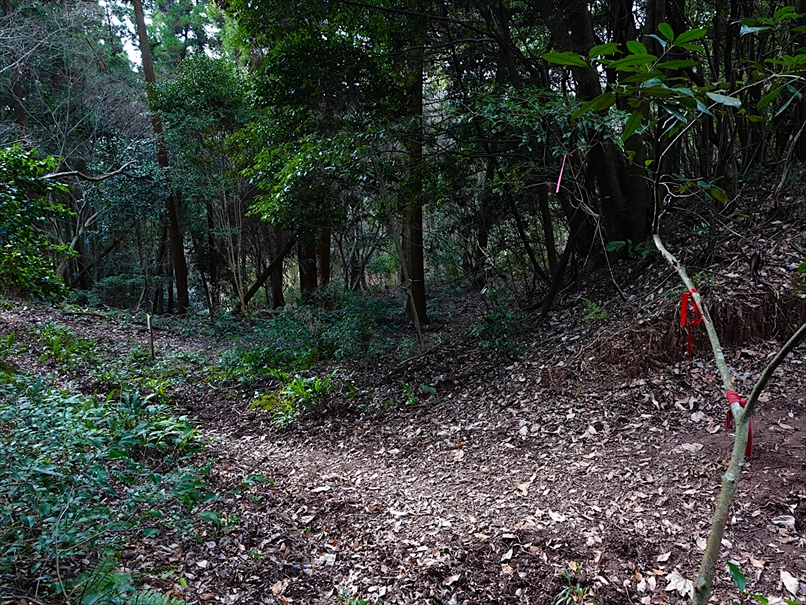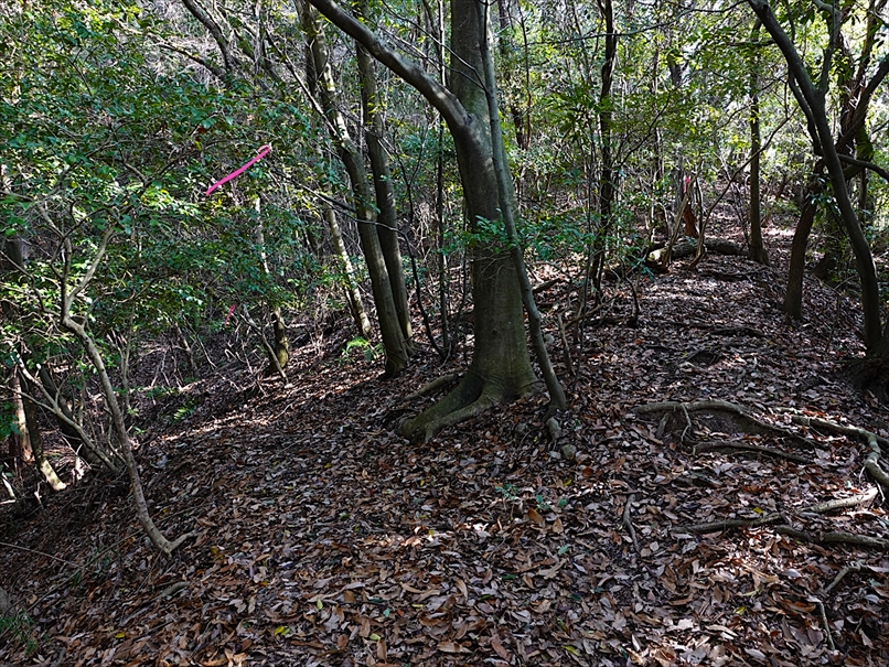左を見ると、ピンクテープが見える。