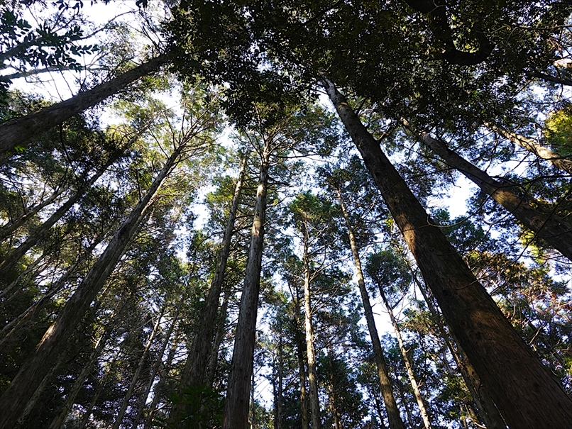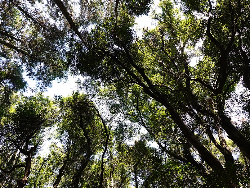 樹林に西日が当たったところだけ撮る。