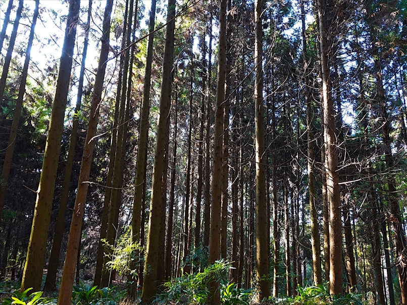 林に陽が当たっていて