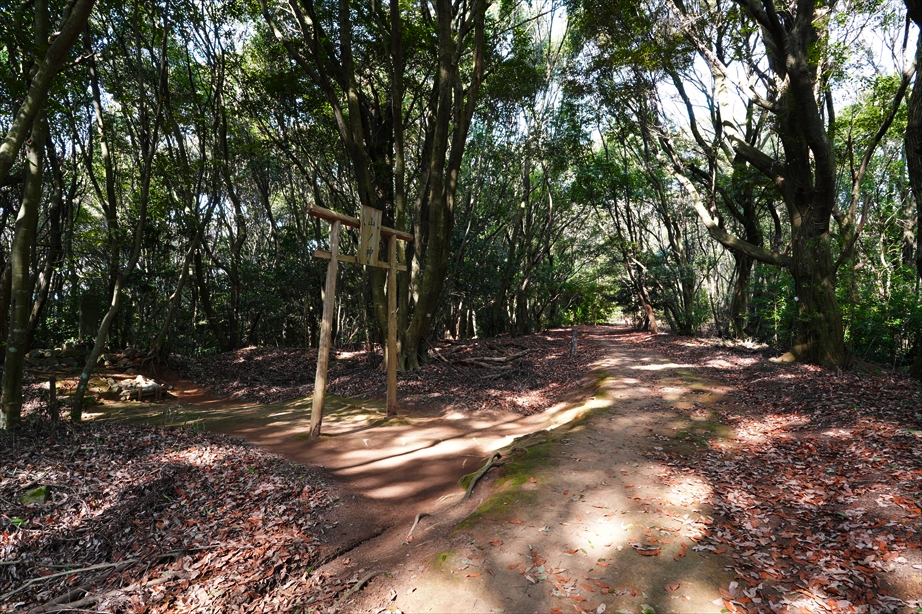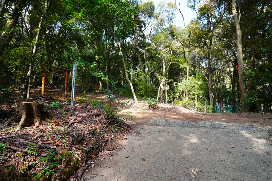 向こうに鳥居が見えてきて