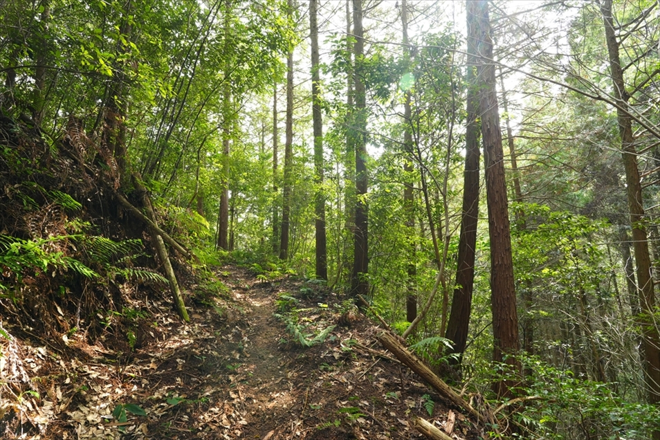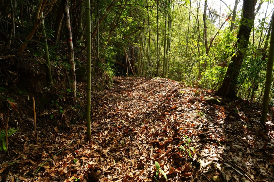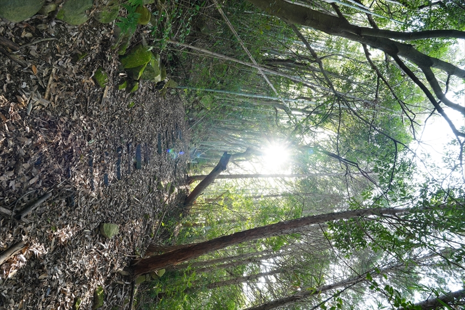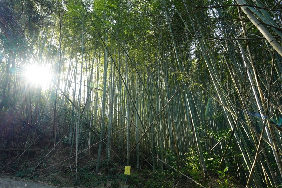 分岐で左折すると、すぐ竹林。