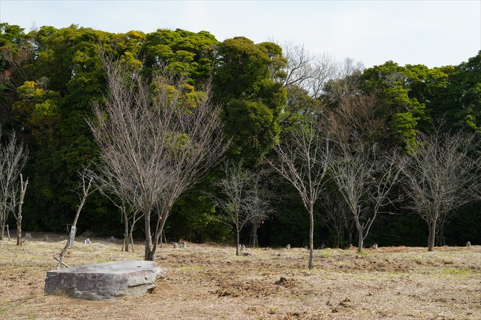 中央右寄りの大きな幹の右側、