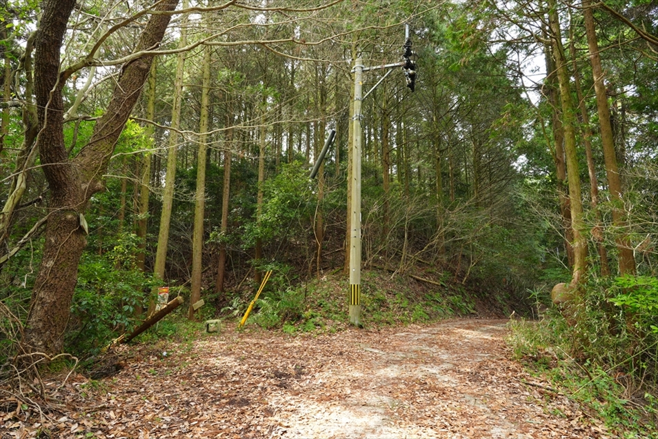 ここを左折して斜面を登る。