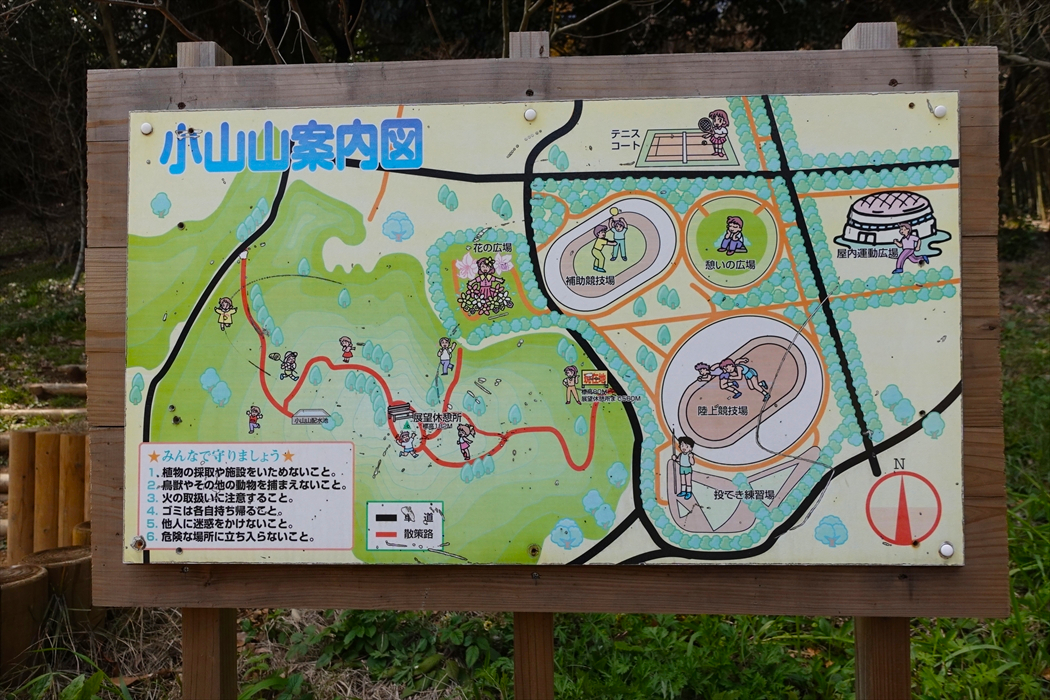 熊本市 総合運動公園 −−−−−− 登山開始 −−−−−− 小山山緑地遊歩道入り口 神園山小山山緑地展望所 小山山 山頂 西側車道 −−−−−− 下山完了 −−−−−− 総合運動公園 熊本市 |