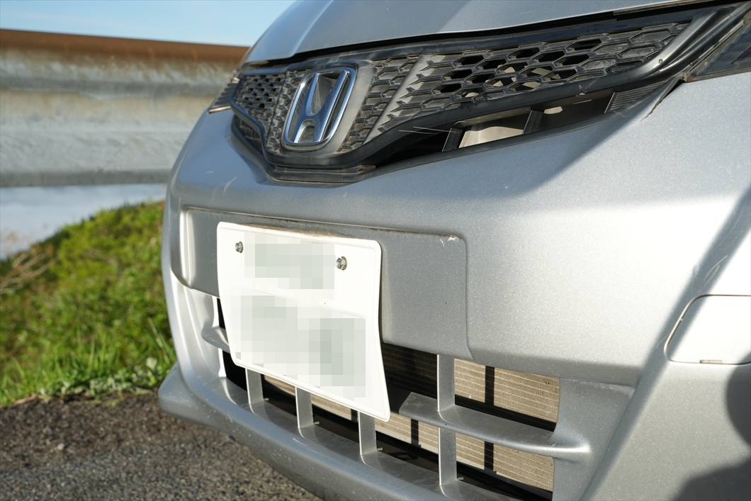 ナンバープレートが凹んでしまったよ〜