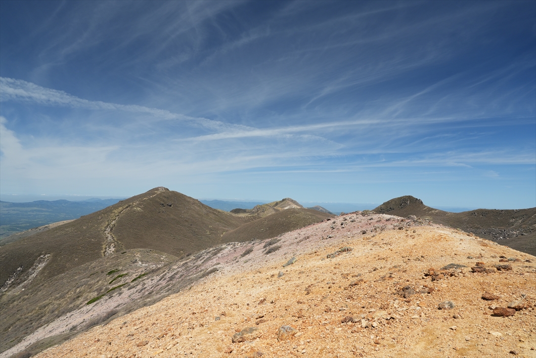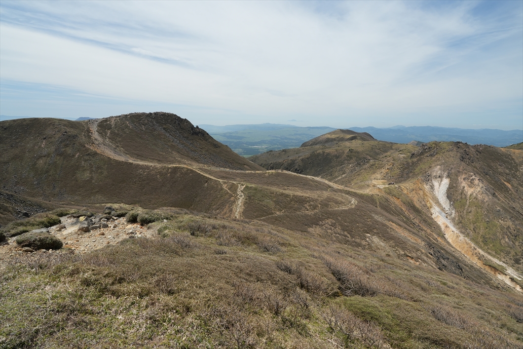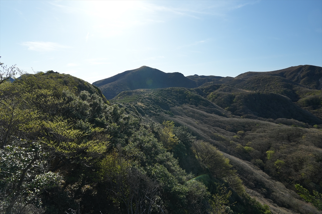 西側の歩いて来た稜線。