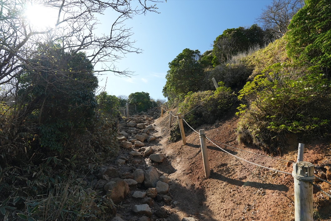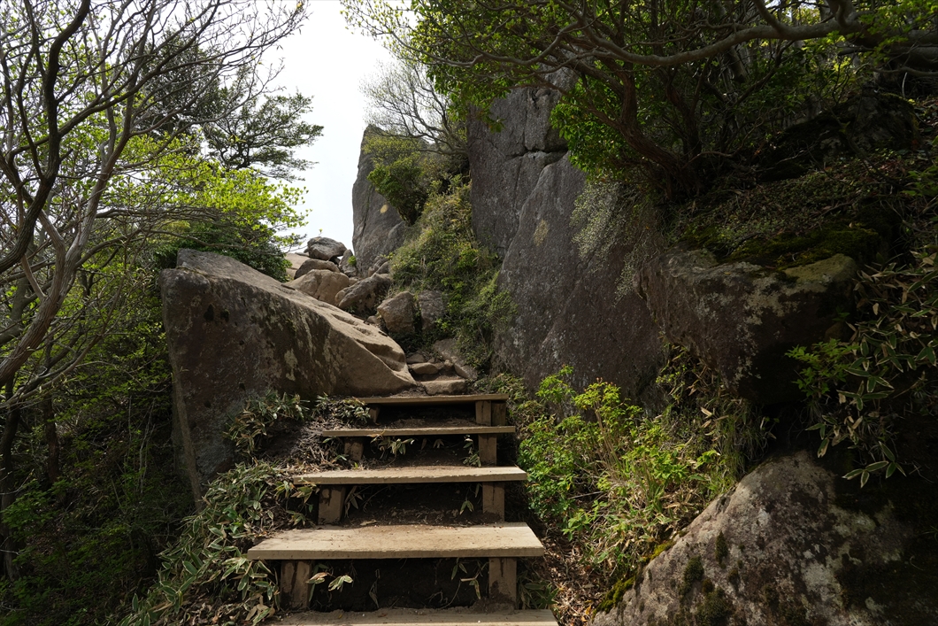 少し登って行くと、手摺り付きの階段。