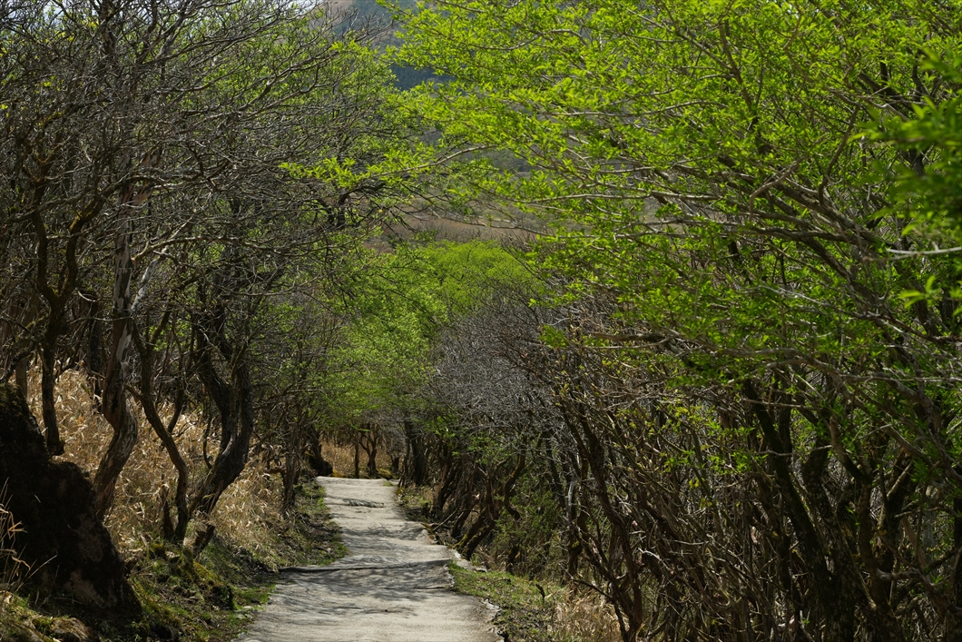 緑の樹々のトンネル。