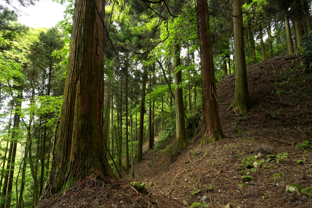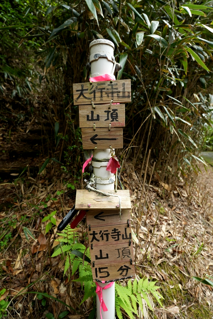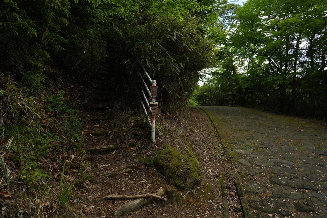 右へ行けば裏手の大行寺山からの道に