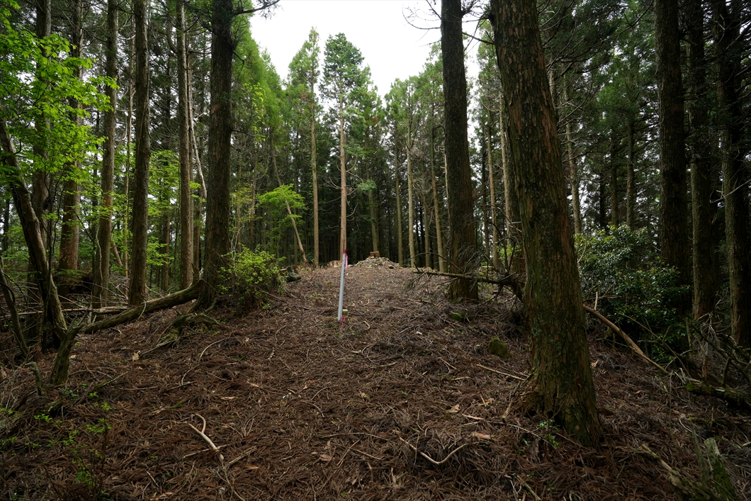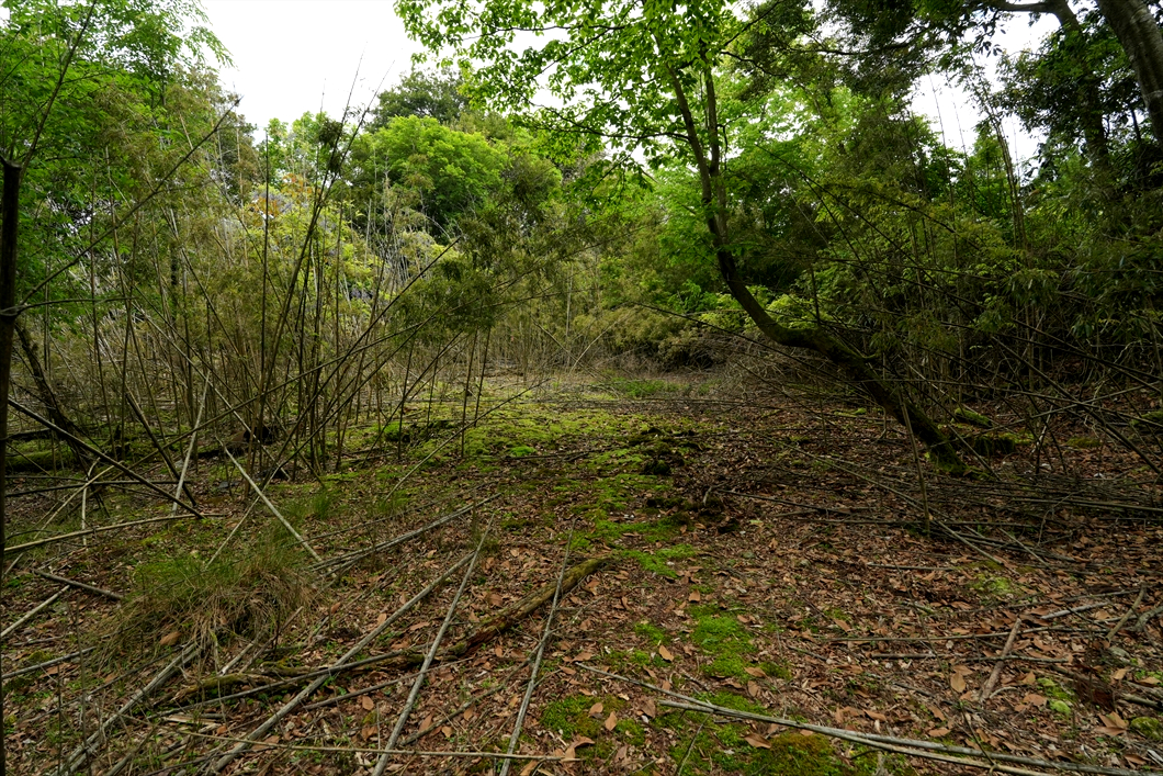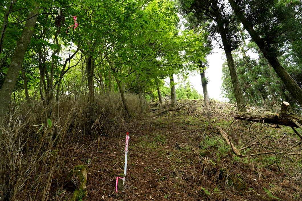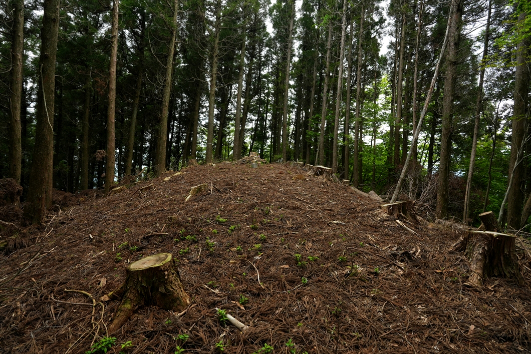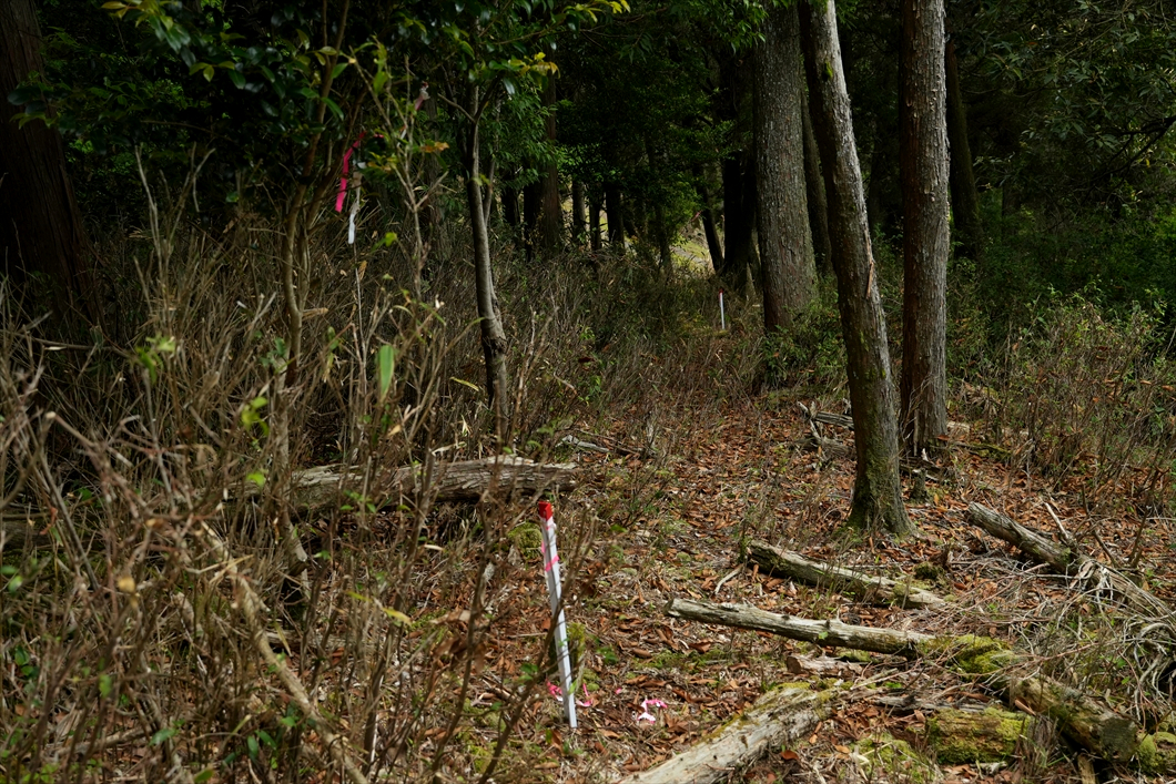 正面に見える倒木は、いつも大行寺山から