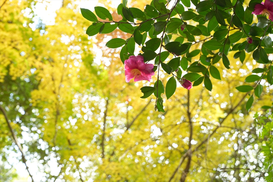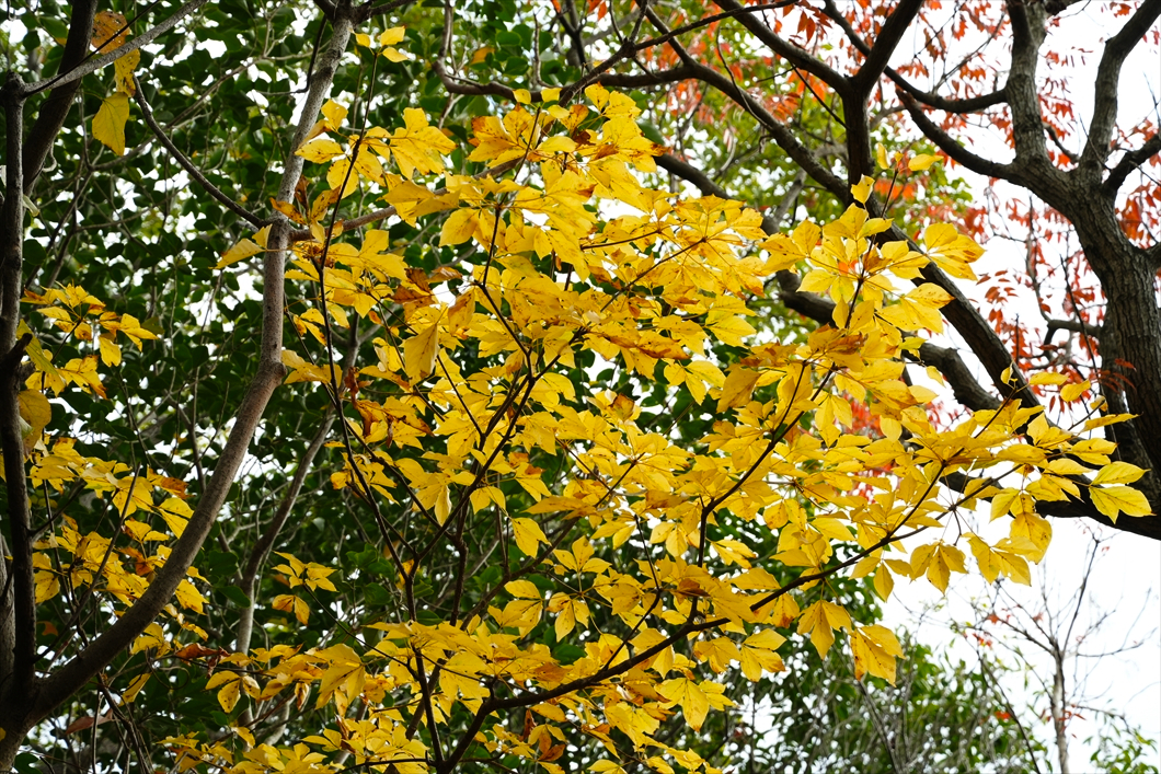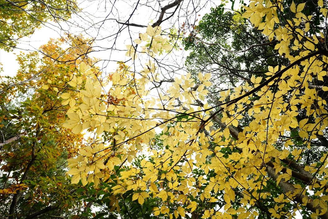 少し先には黄葉が。