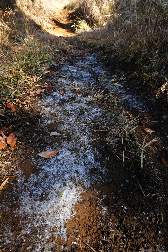 薄っすらと霜柱が