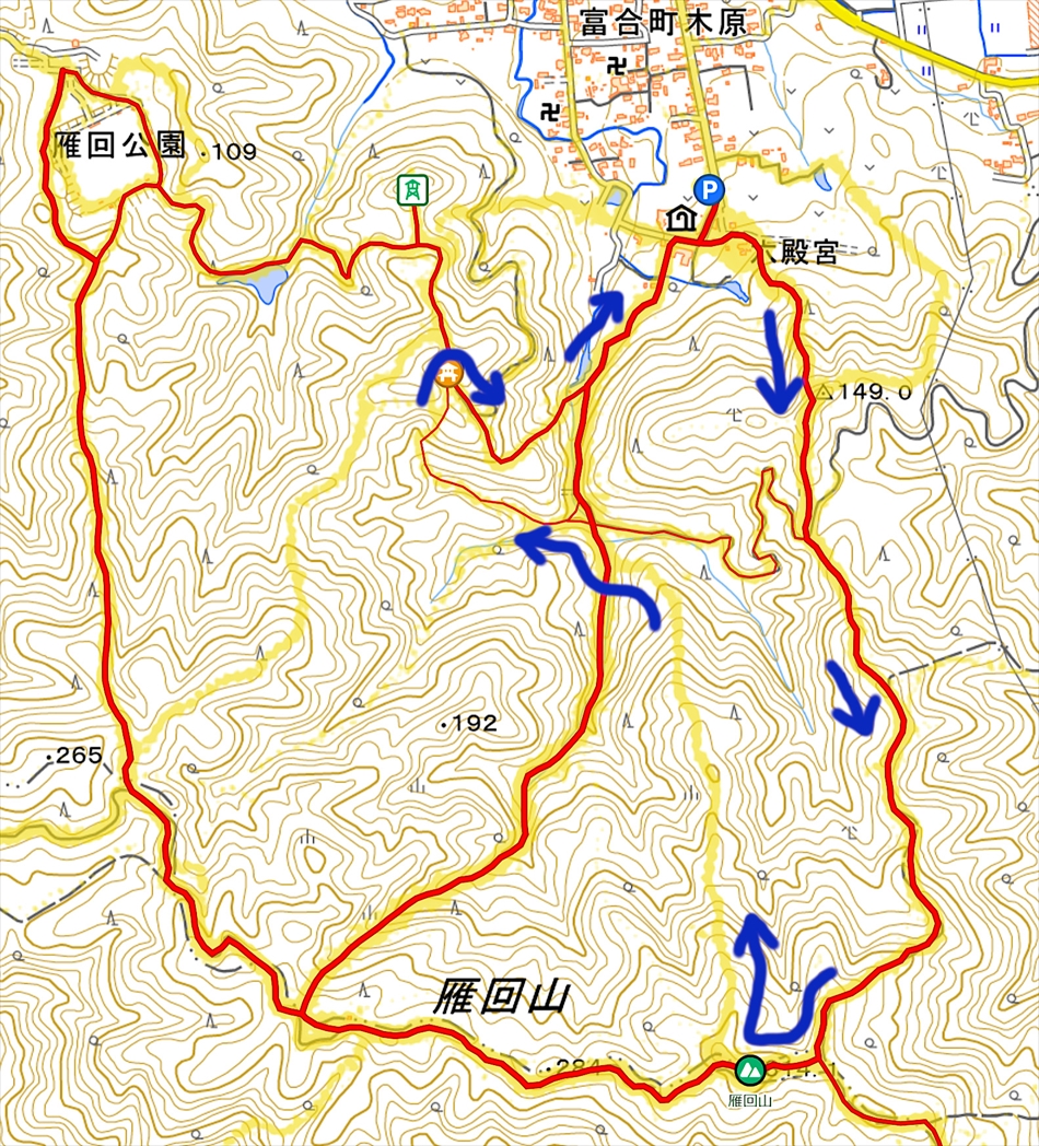 熊本市 木原まちの広場 −−−−−− 登山開始 −−−−−− 木原まちの広場 六殿神社 宮山展望所 管理道コース 雁回山 山頂直登コース 奥の院 滝不動 木原まちの広場 −−−−−− 登山完了 −−−−−− 木原まちの広場 熊本市 |